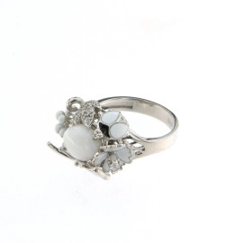 Пръстен от "Jacklin " в сребро с бял ахат, цветен емайл и циркони