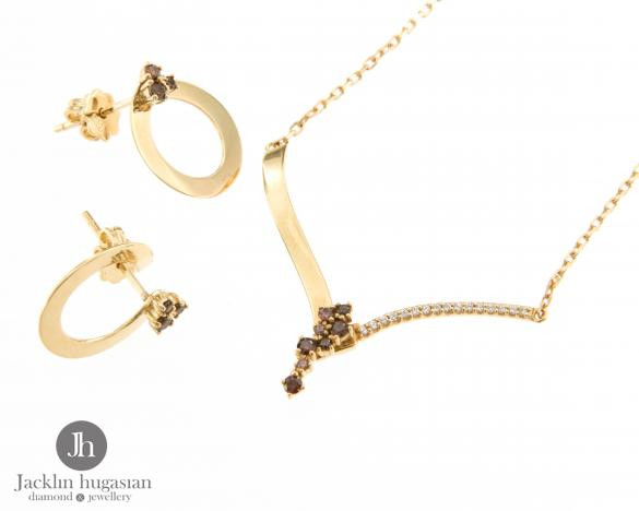 Обеци от "Jacklin hugasian" в жълто злато с цирконии и опушен топаз.