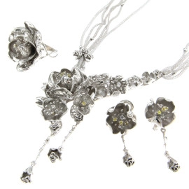 Комплект пръстен, обеци и колие от "Jacklin hugasian" в сребро с цветен емайл, цитрин, рубин и циркони. Колекция "Roberto Bravo"