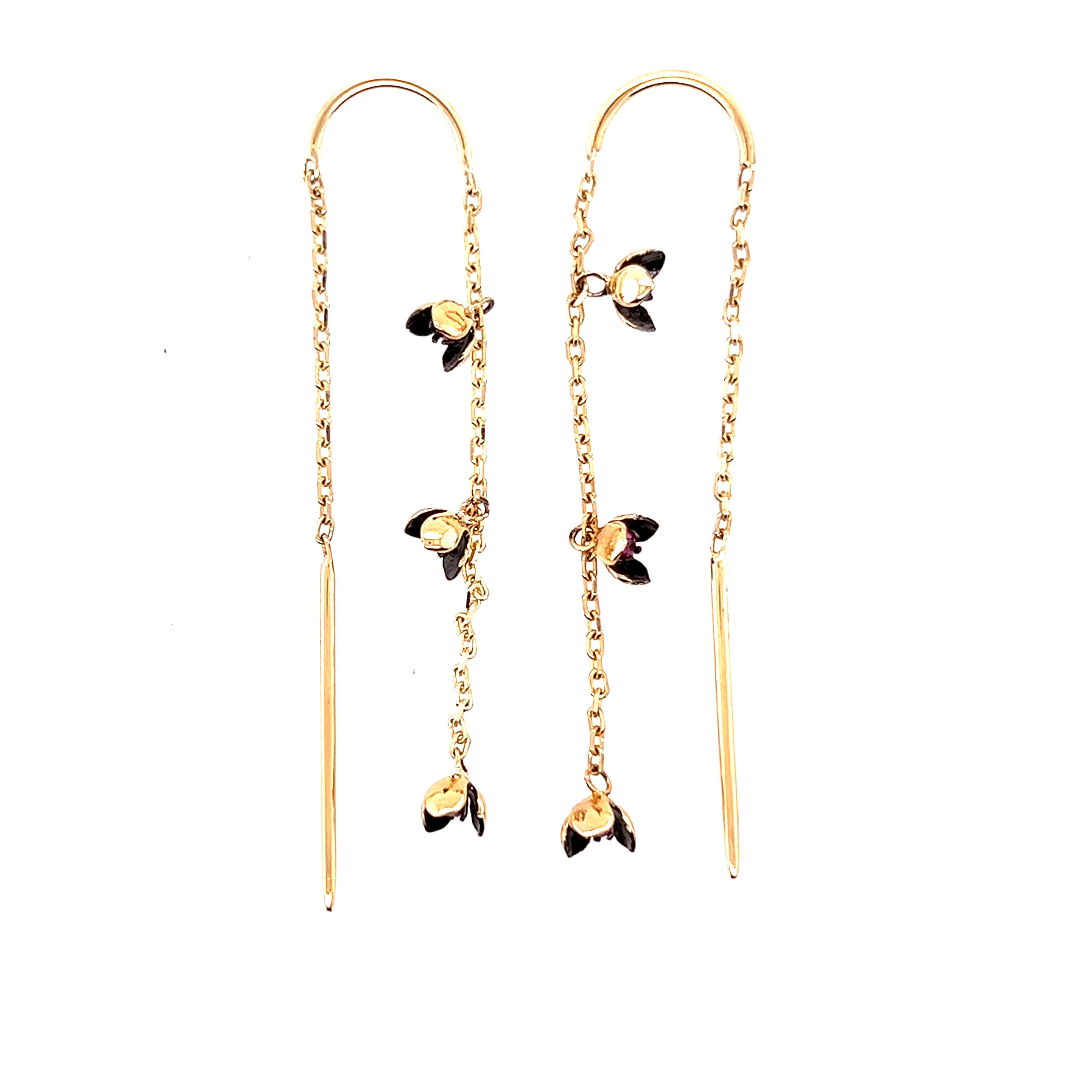 Обеци от “Jacklin hugasian” жълто и черно злато с рубин.