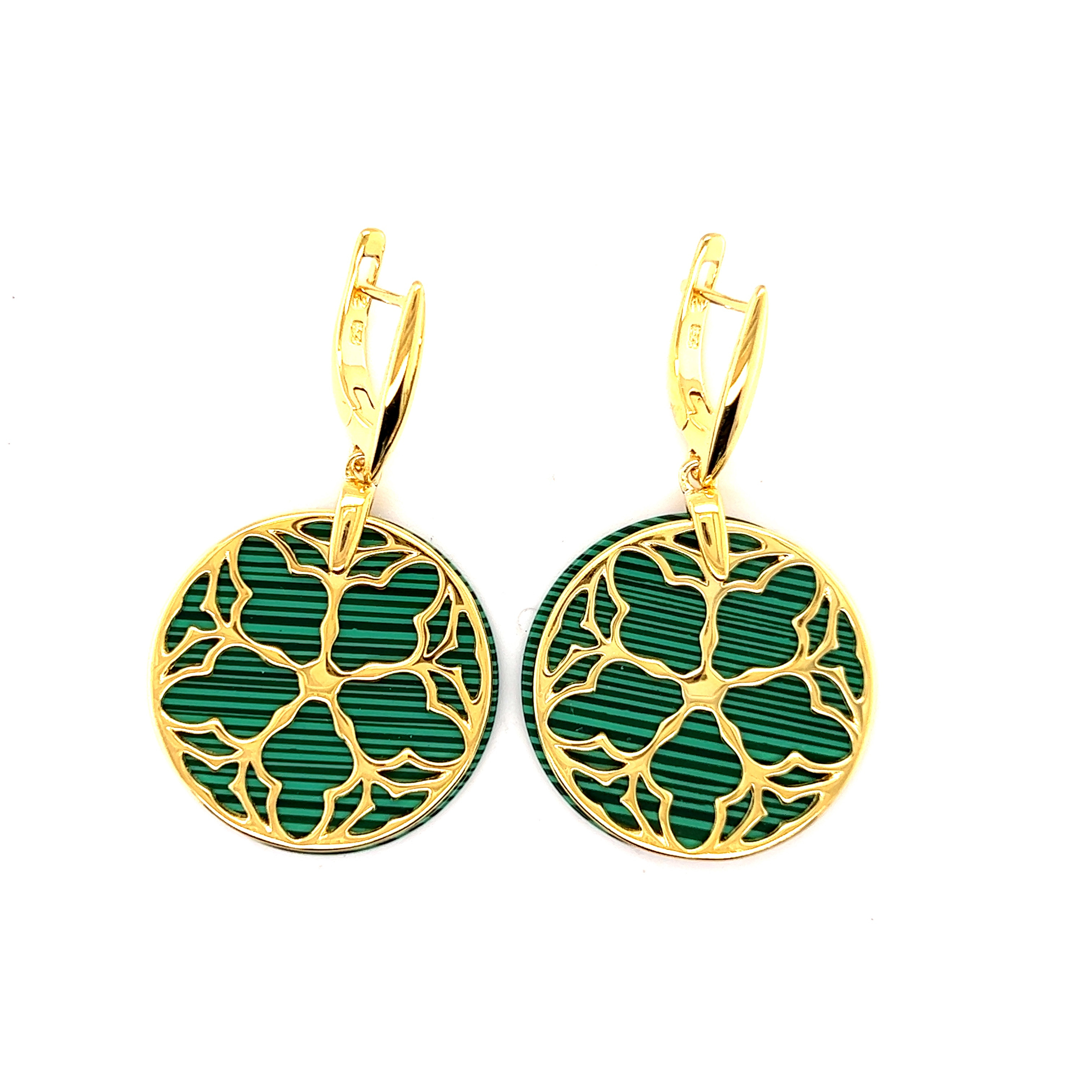 Обеци от "Jacklin hugasian" в сребро с позлата и малахит