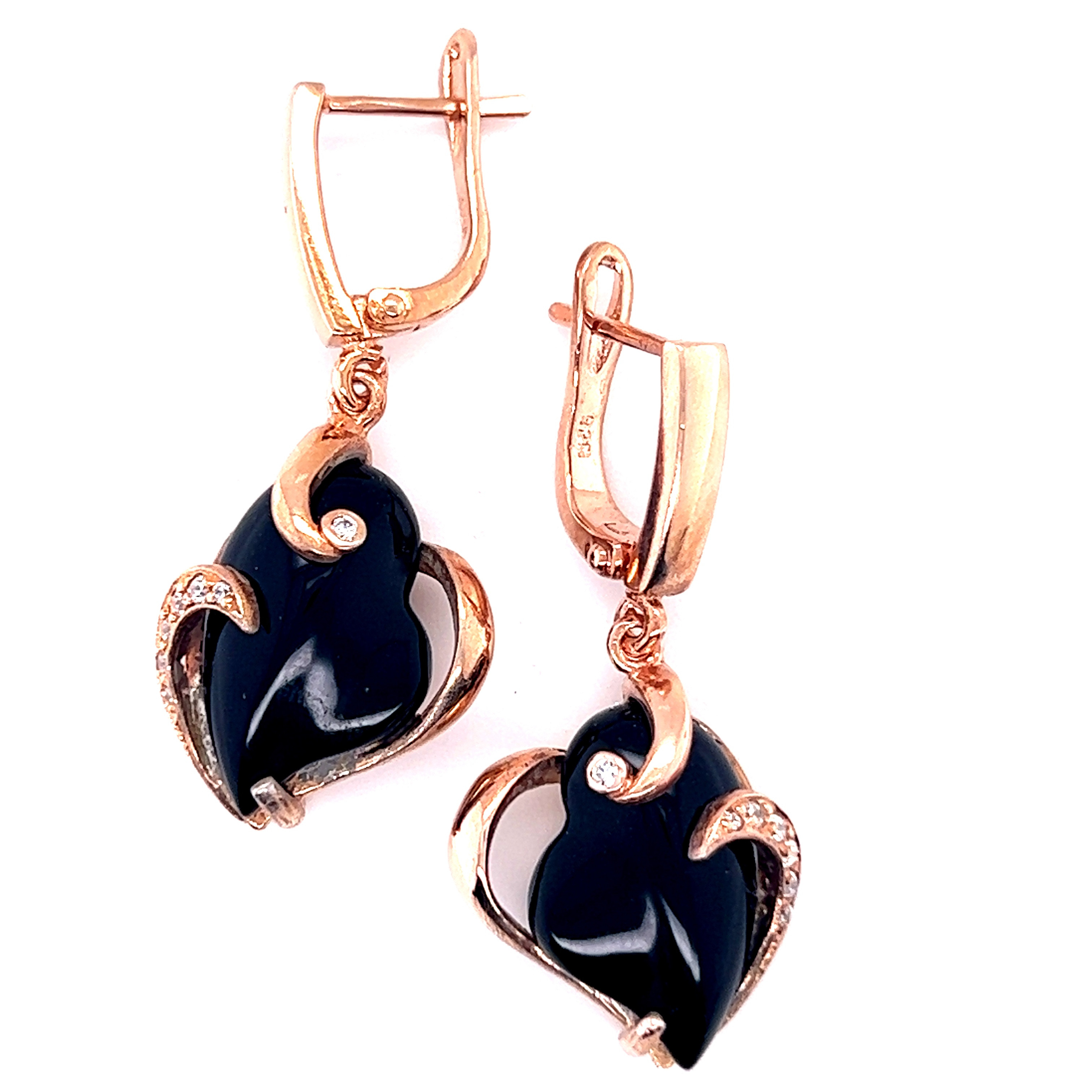 Обеци от "Jacklin hugasian" в розово сребро ,оникс и циркони.