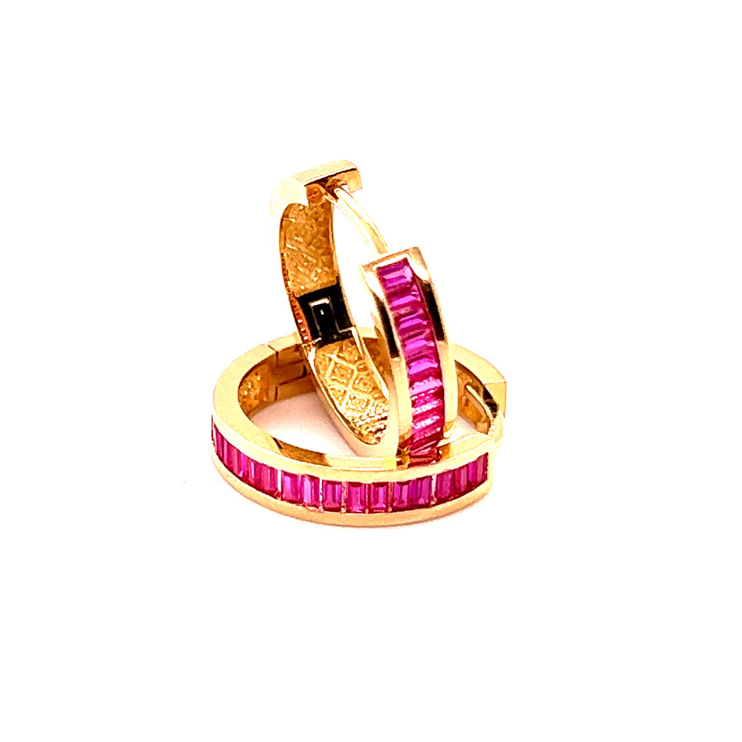 Обеци от “Jacklin hugasian" в жълто злато с цветен циркони.