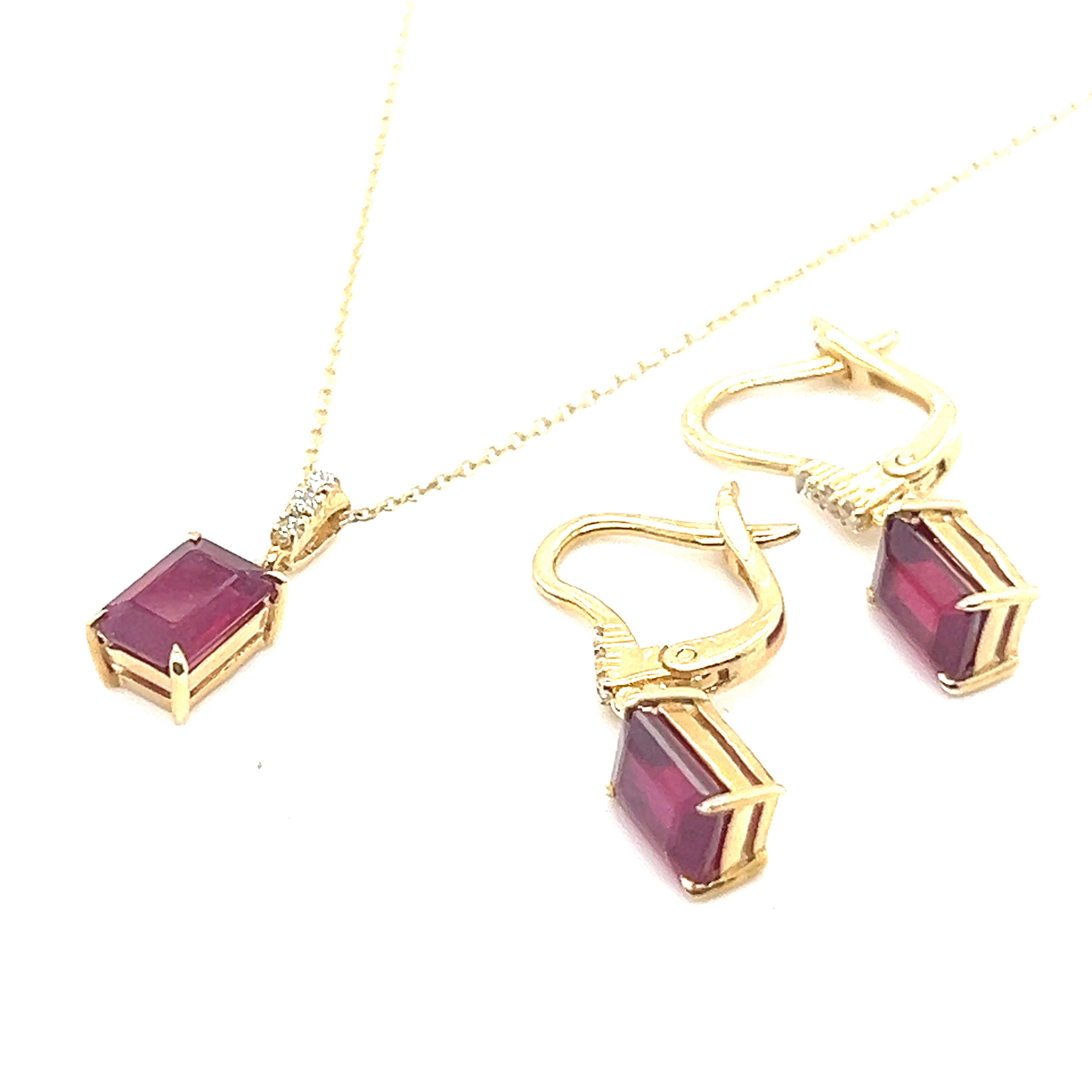 Комплект от "Jacklin hugasian" в жълто злато с рубин и диаманти.