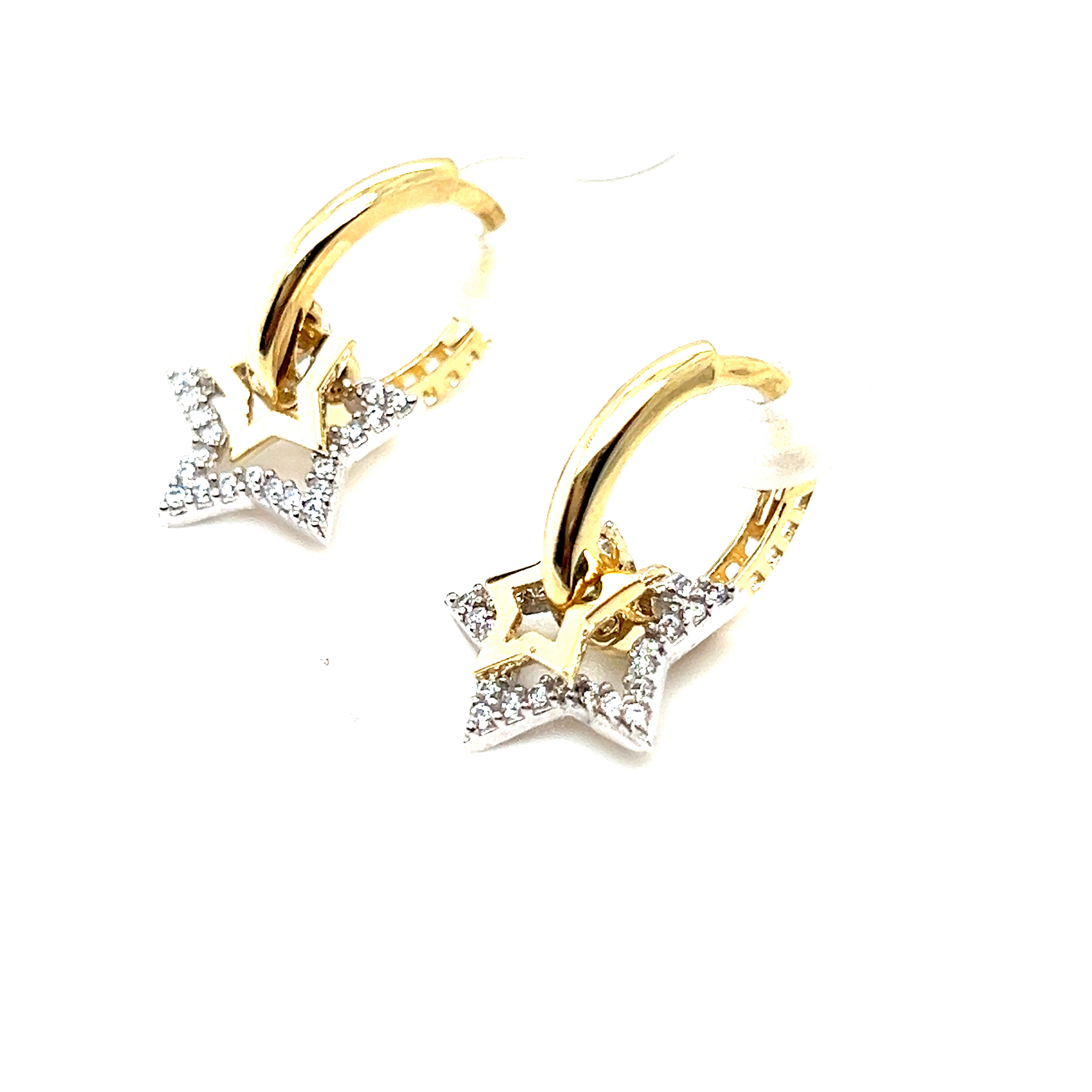 Обеци от “Jacklin hugasian” в жълто и бяло злато гланц ,с циркони.