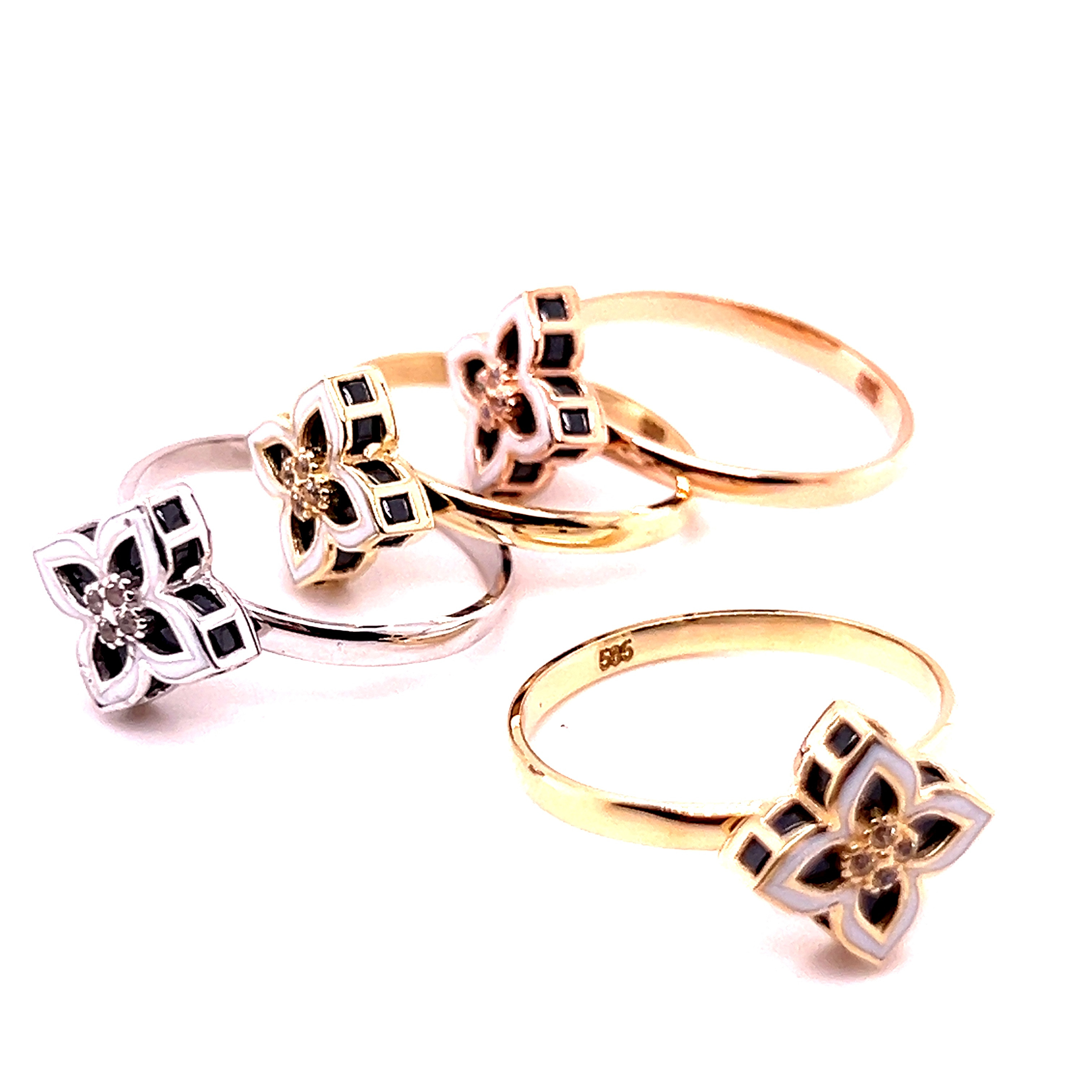 Пръстен от “Jacklin hugasian” в жълто злато, с цветен емайл.