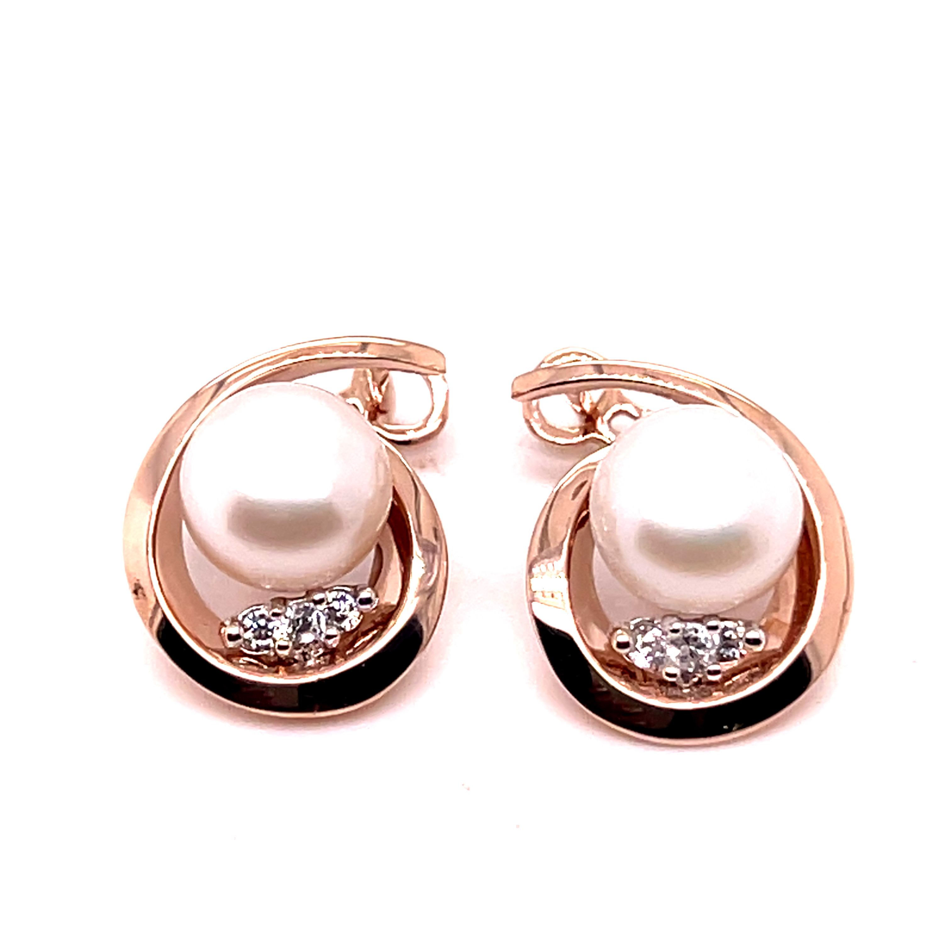 Комплект от “Jacklin hugasian” в розово злато с перла и циркони.
