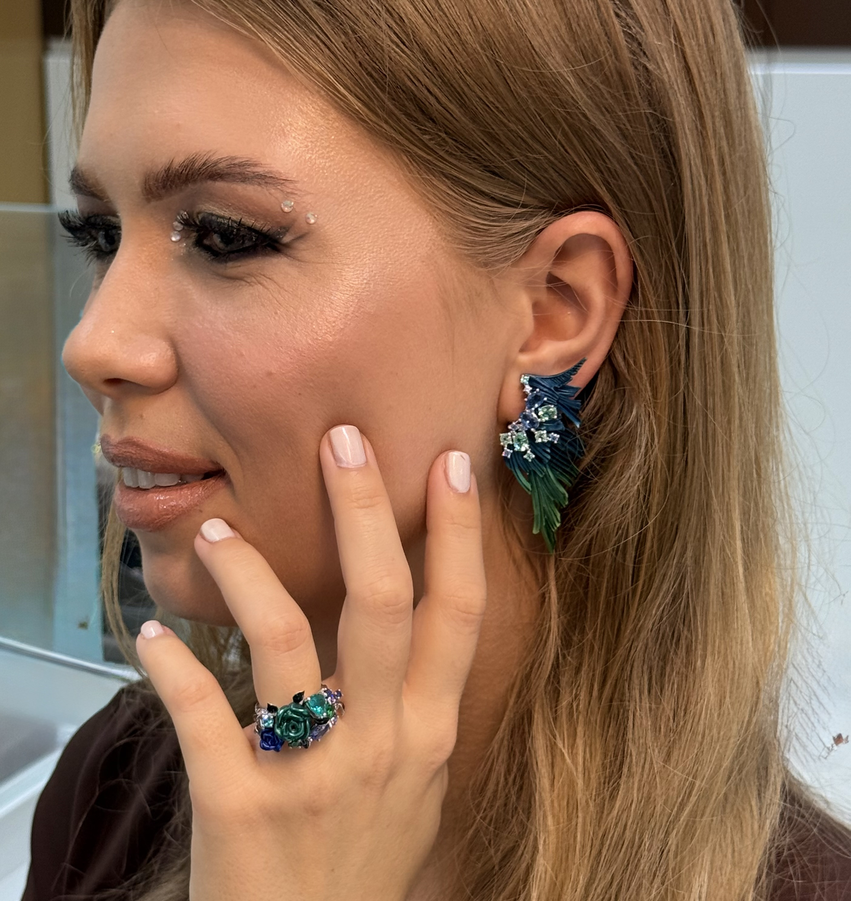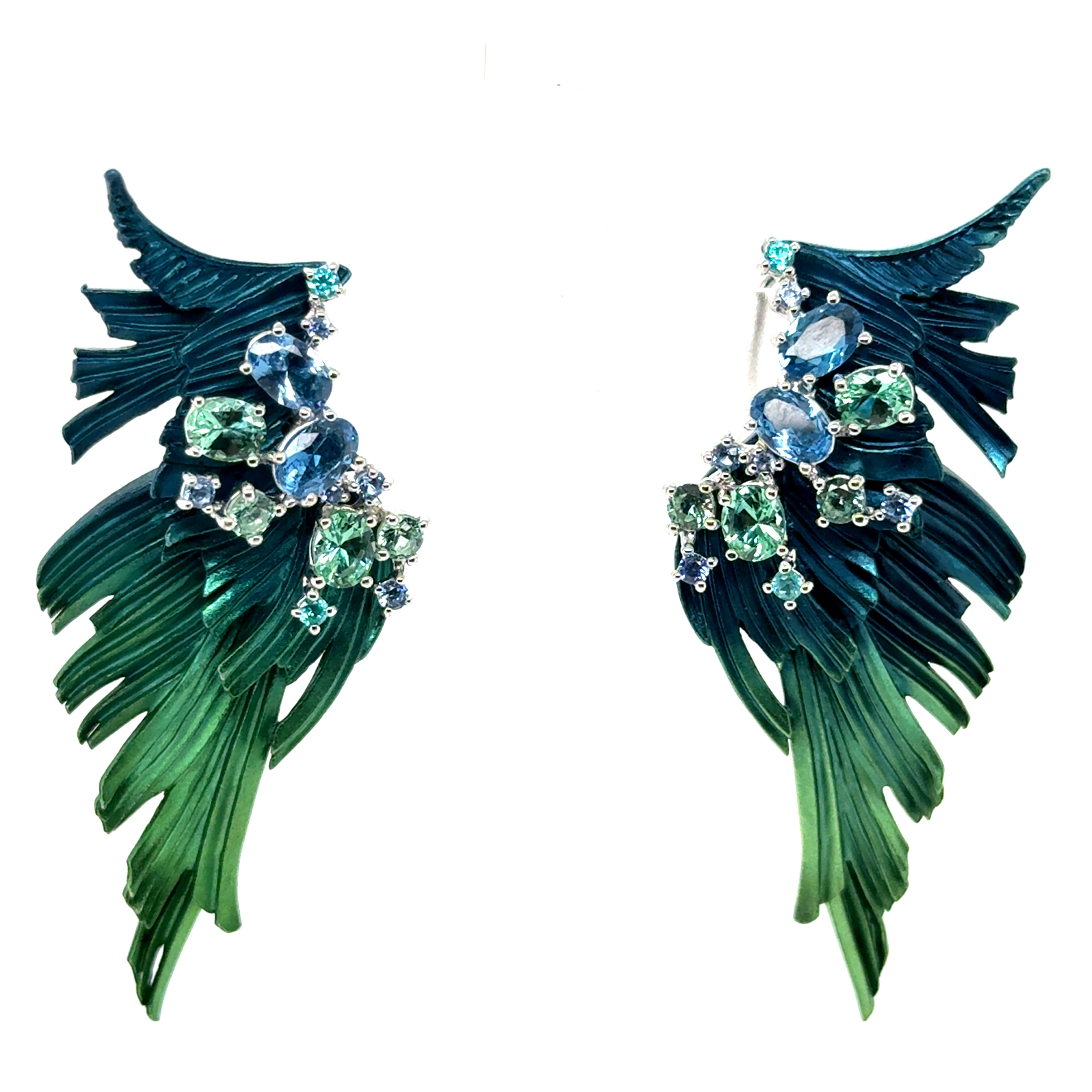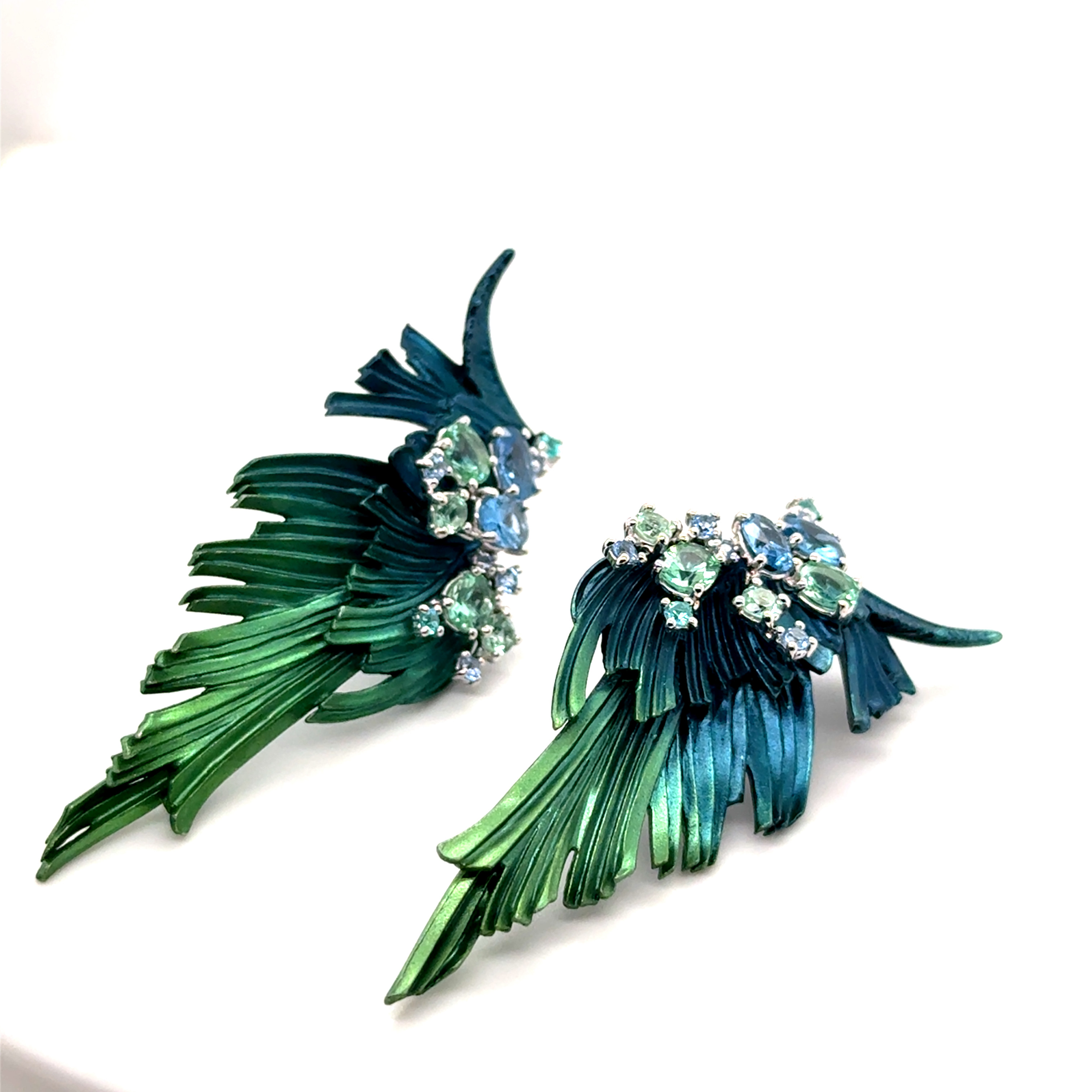 Обеци от "Jacklin hugasian" в сребро с цветно покритие, топаз и турмалин.