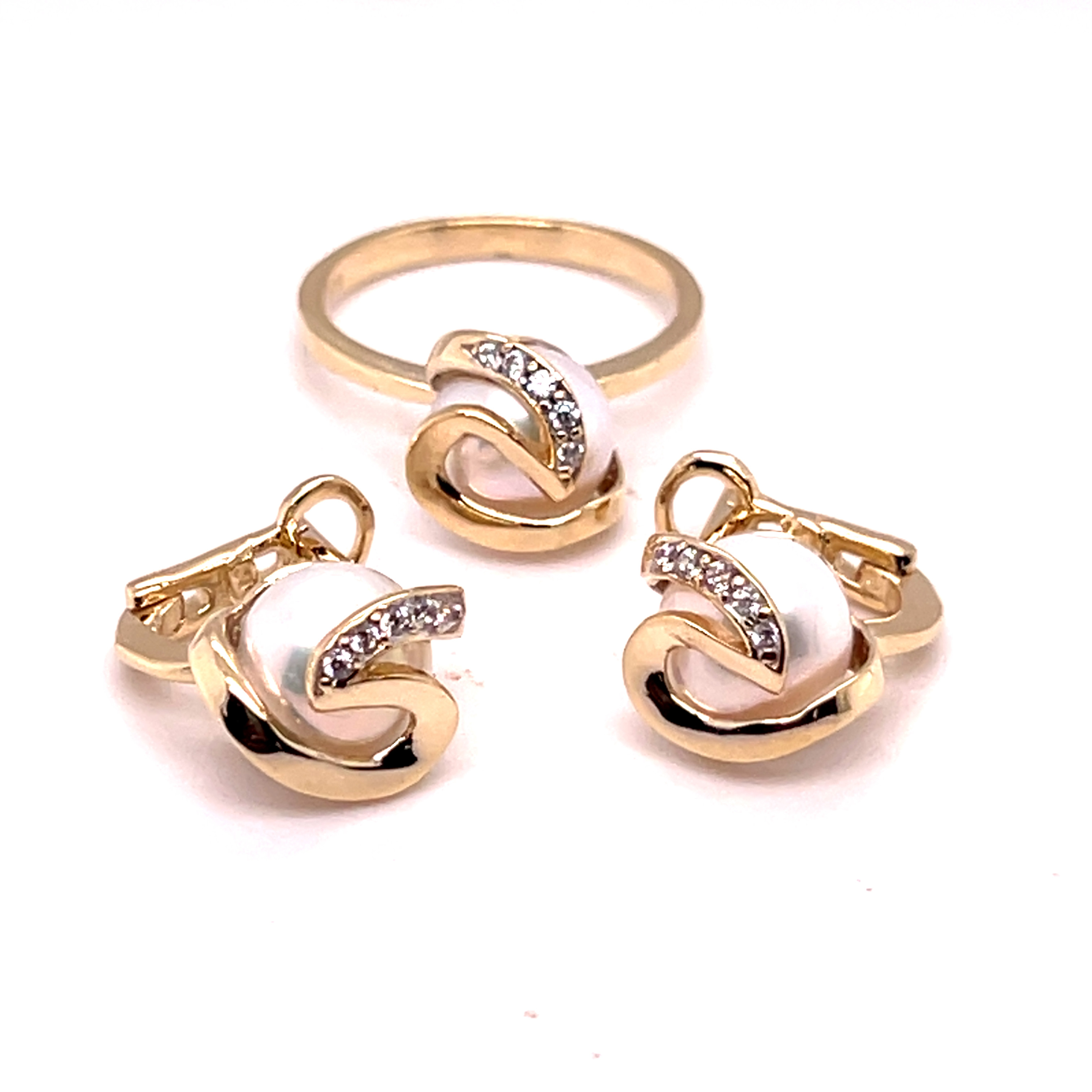 Комплект от “Jacklin hugasian” в жълто злато с перла и циркони