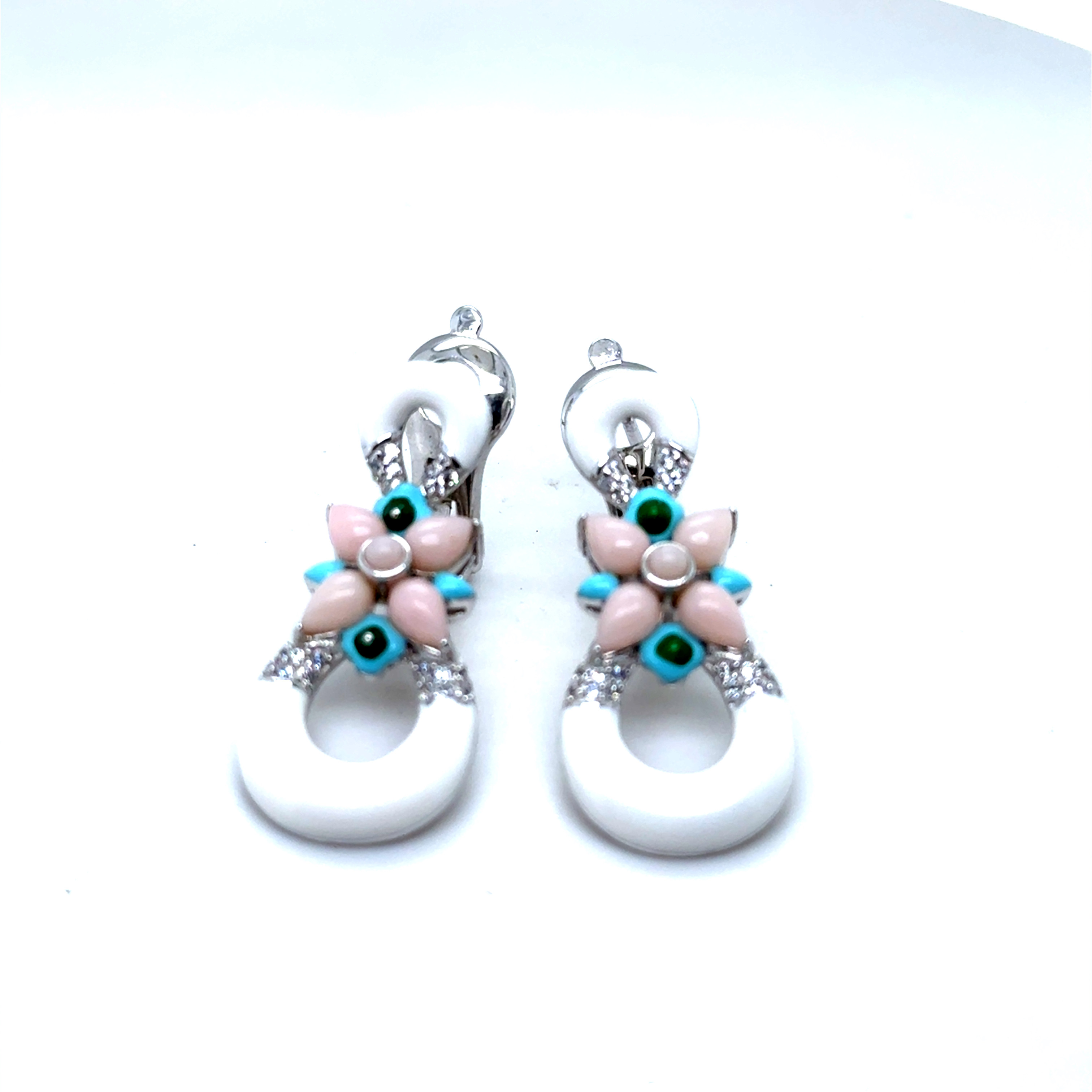 Обеци от “Jacklin hugasian” в сребро, тюркоаз, емайл и циркони.