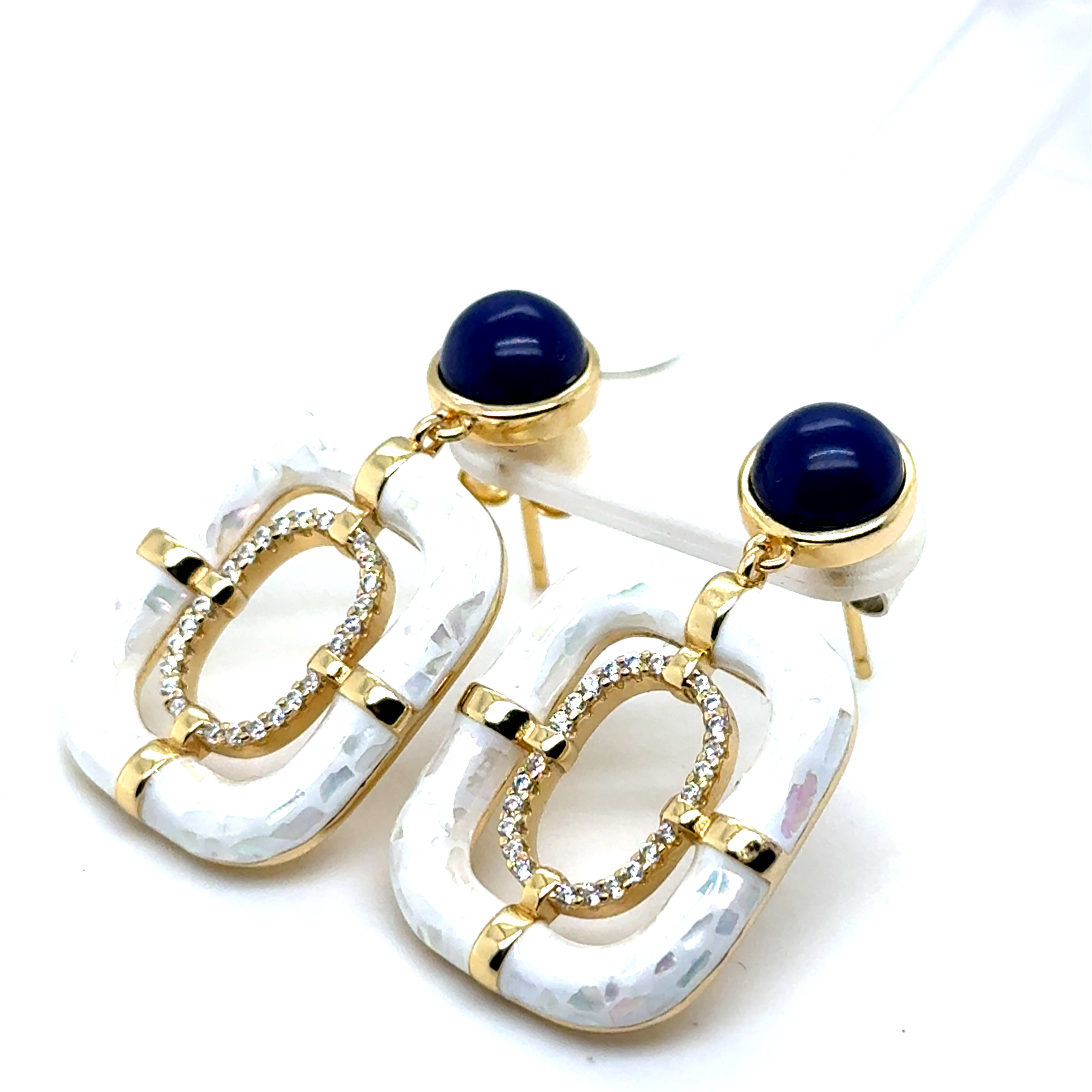 Обеци от “Jacklin hugasian” в сребро с позлата,естествен седеф,лапис лазули и циркони.