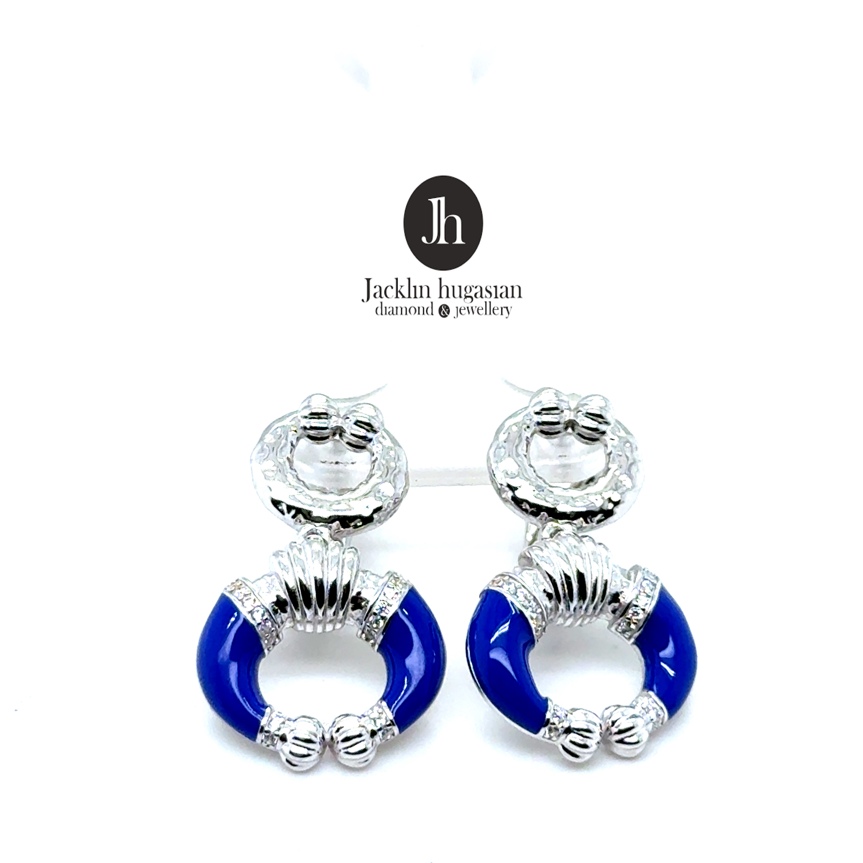 Обеци от “Jacklin hugasian” в сребро с емайл и цирконии.
