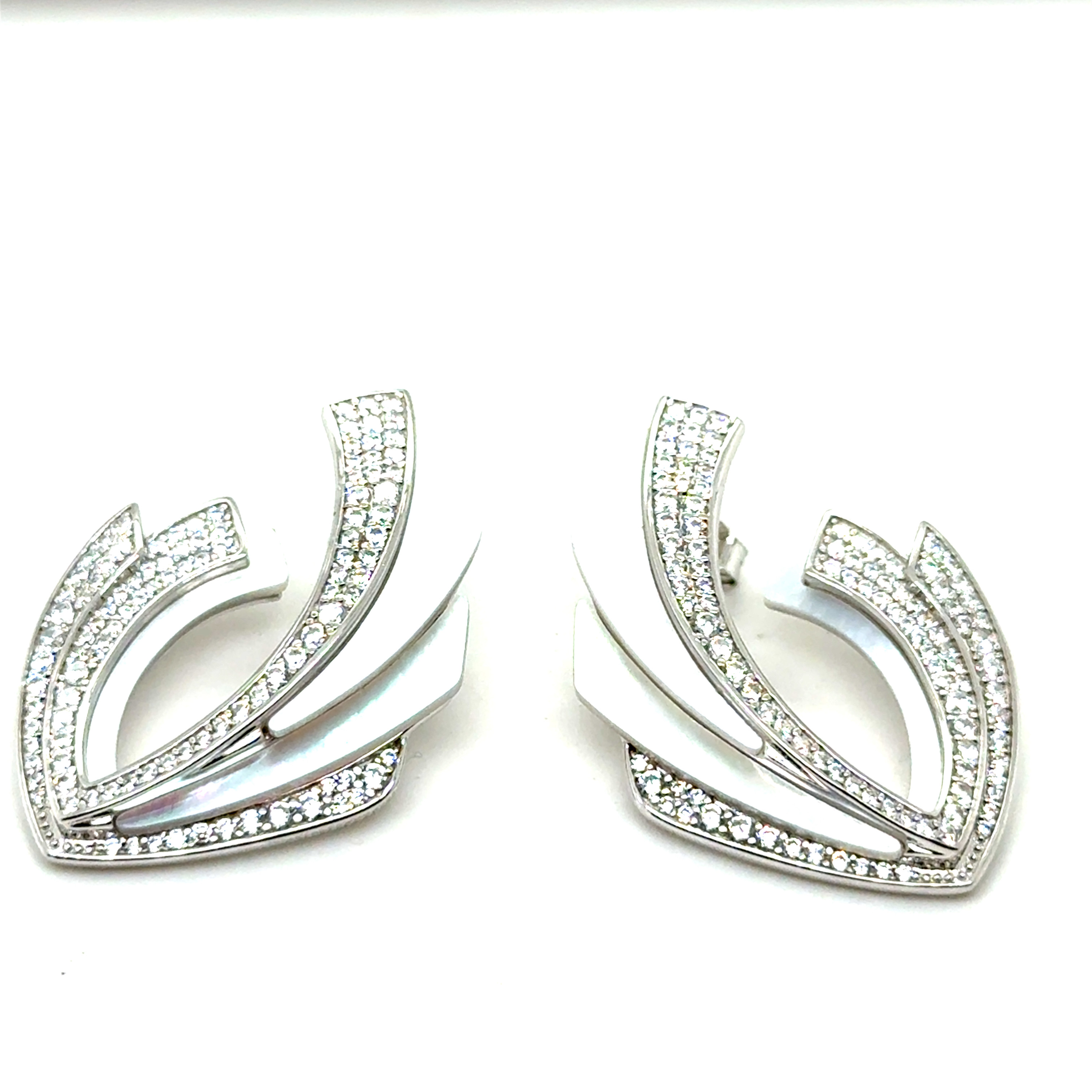 Обеци от "Jacklin hugasian" в сребро с циркони и естествен седеф.
