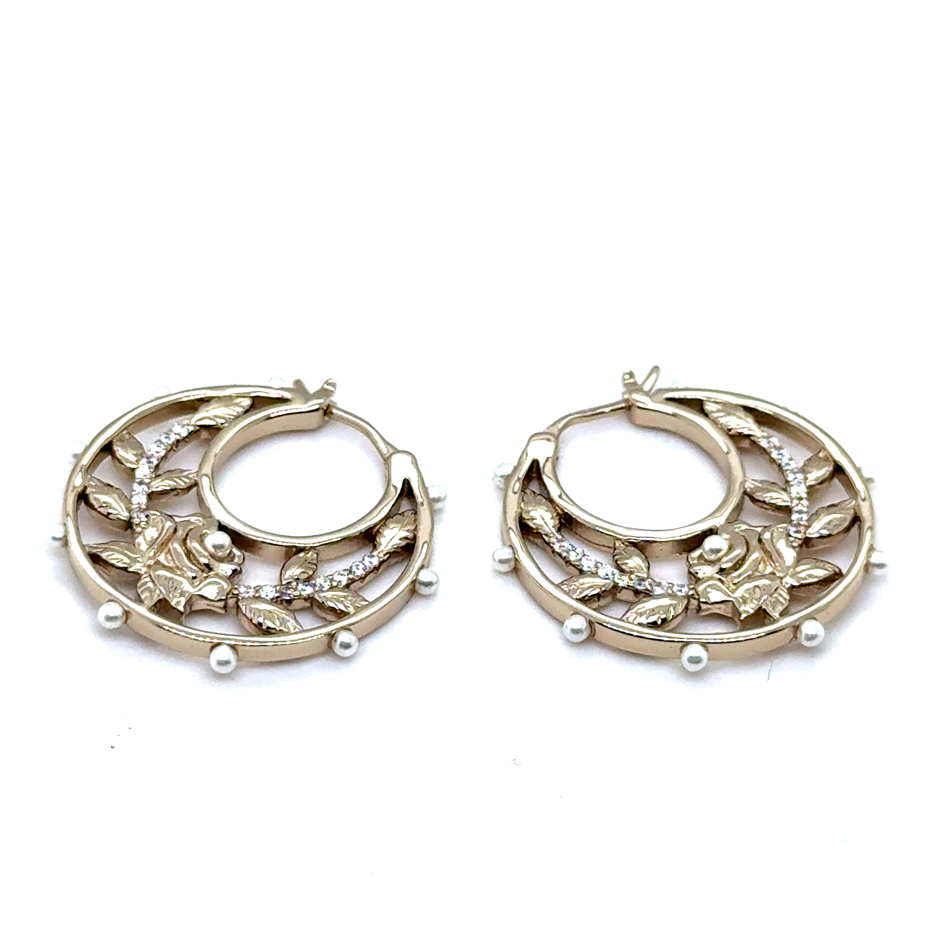 Обеци от "Jacklin hugasian" в сребро с позлата, циркони и естествени перли.
