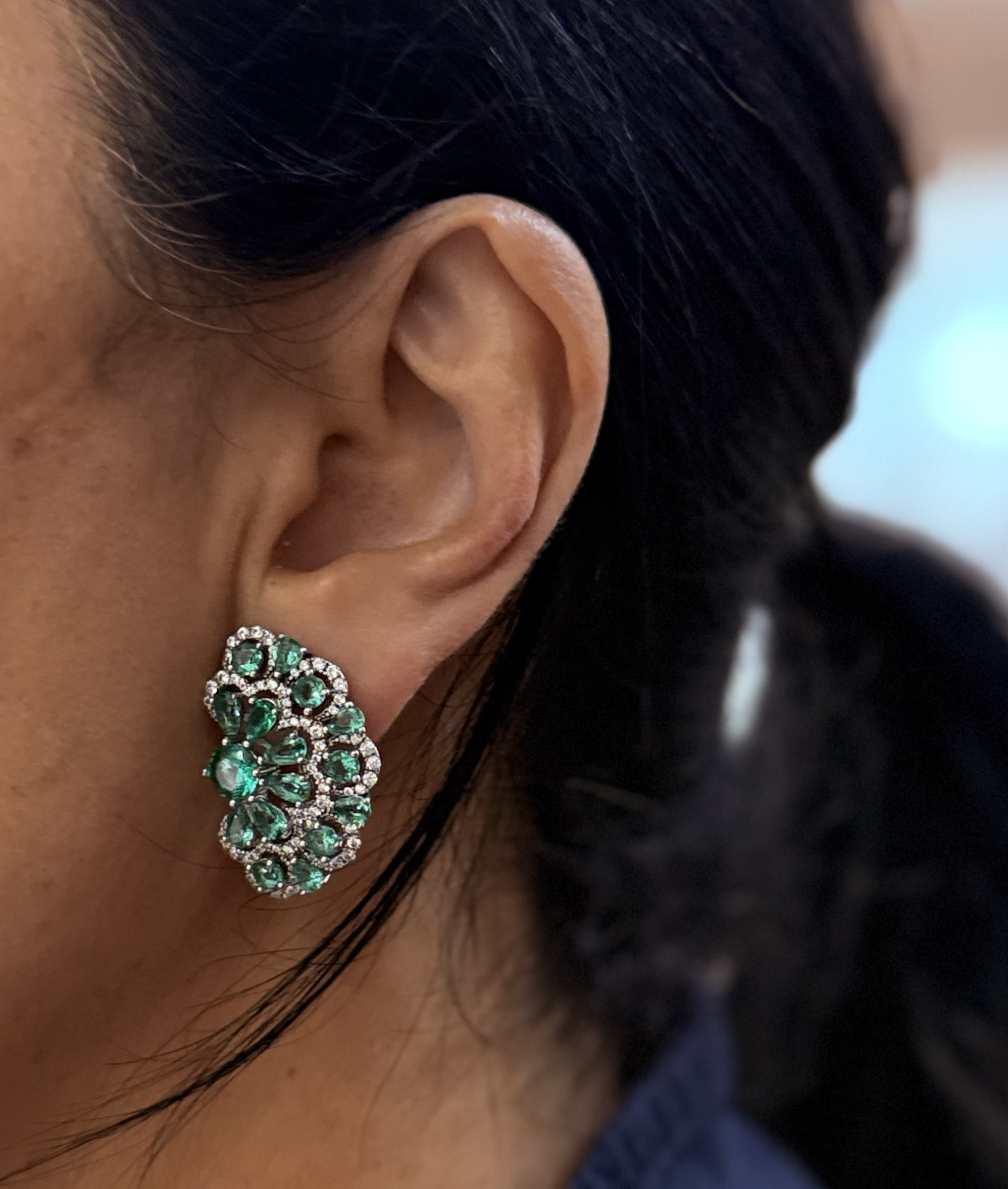Обеци от "Jacklin hugasian" в сребро с нефрит и циркони.