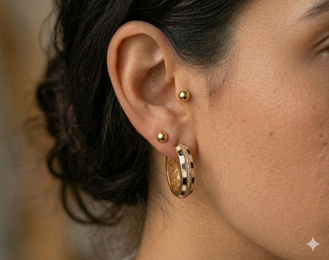 Обеци от “Jacklin hugasian” в жълто златo с цветен емайл и циркони.