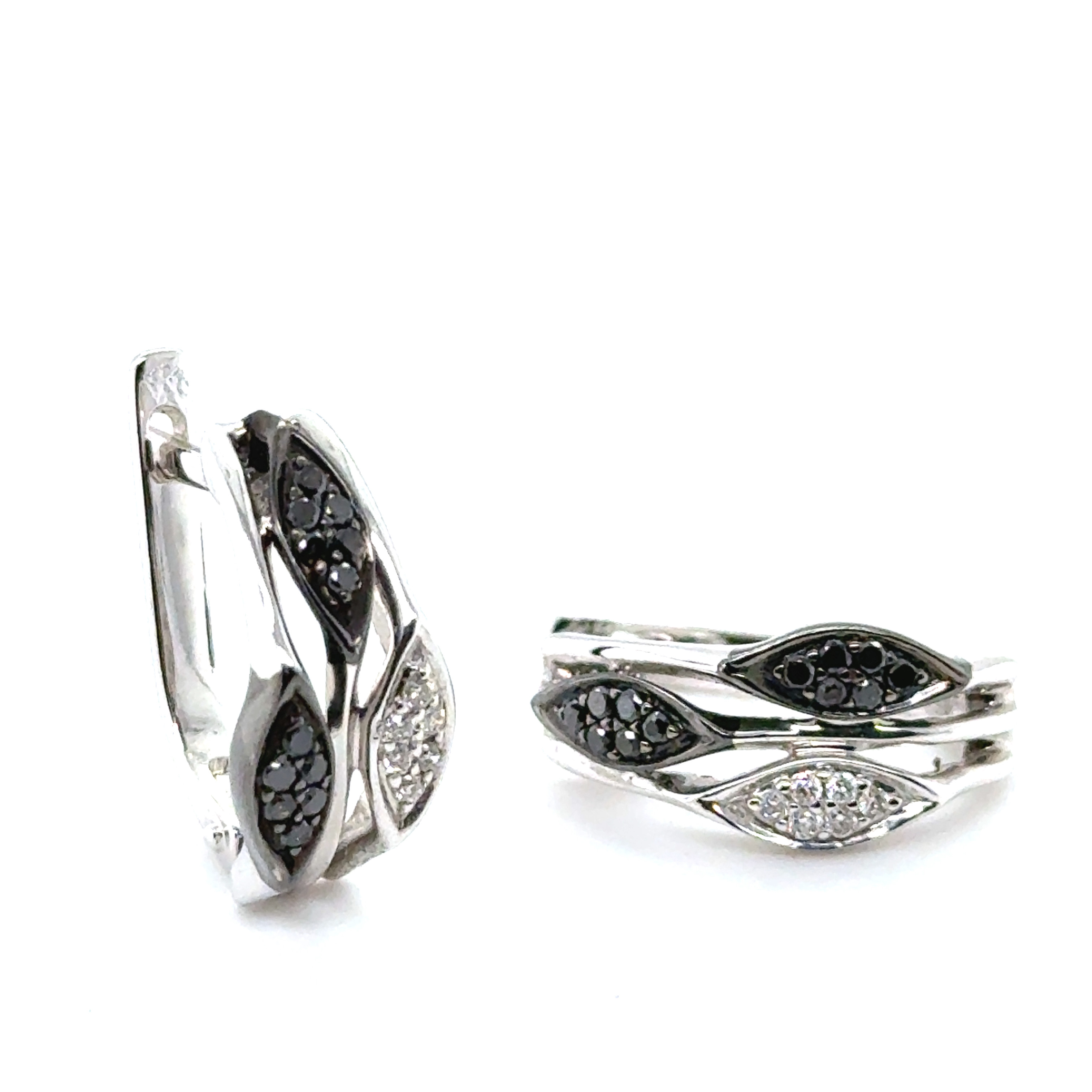 Обеци от “Jacklin hugasian” в бяло злато с бели и черни диаманти