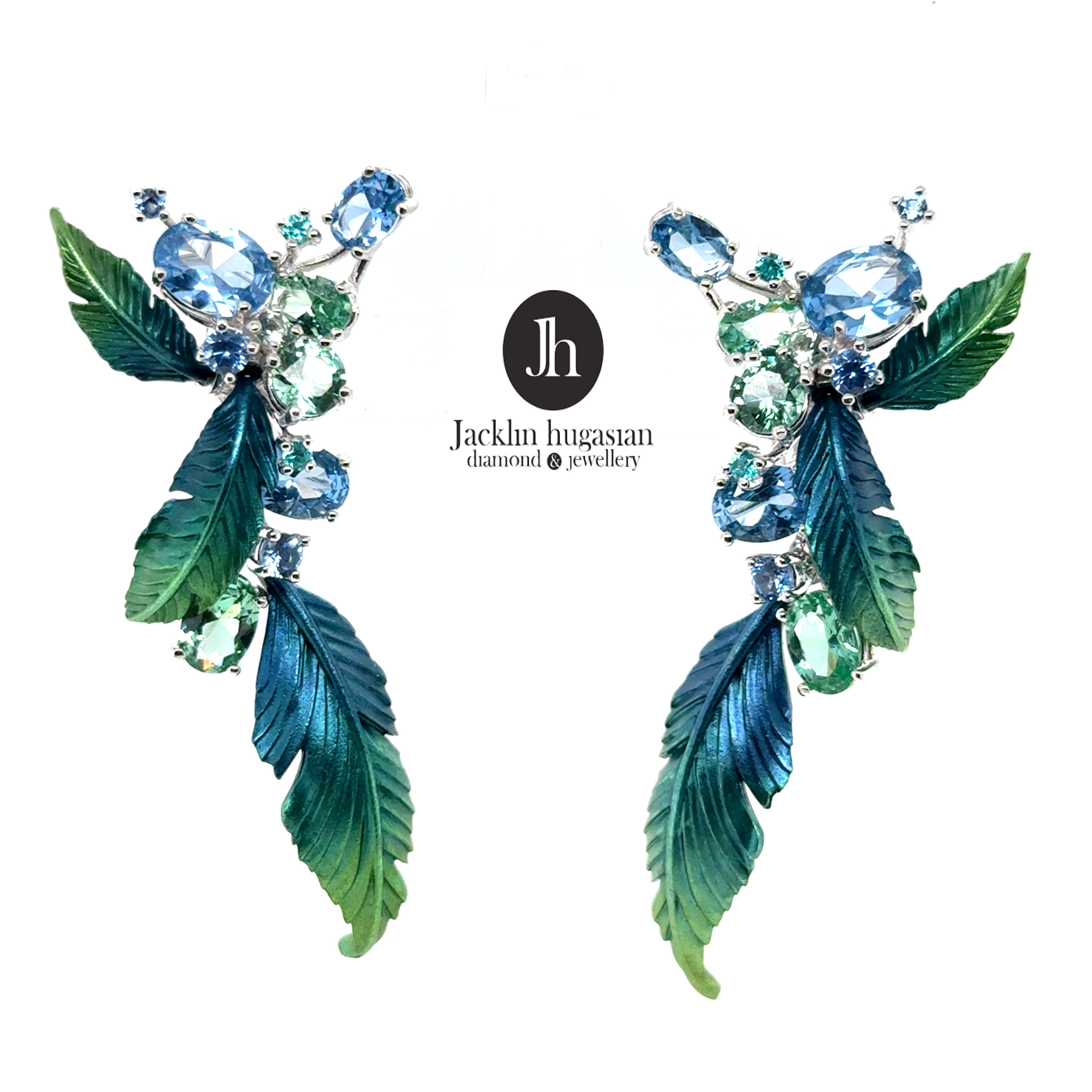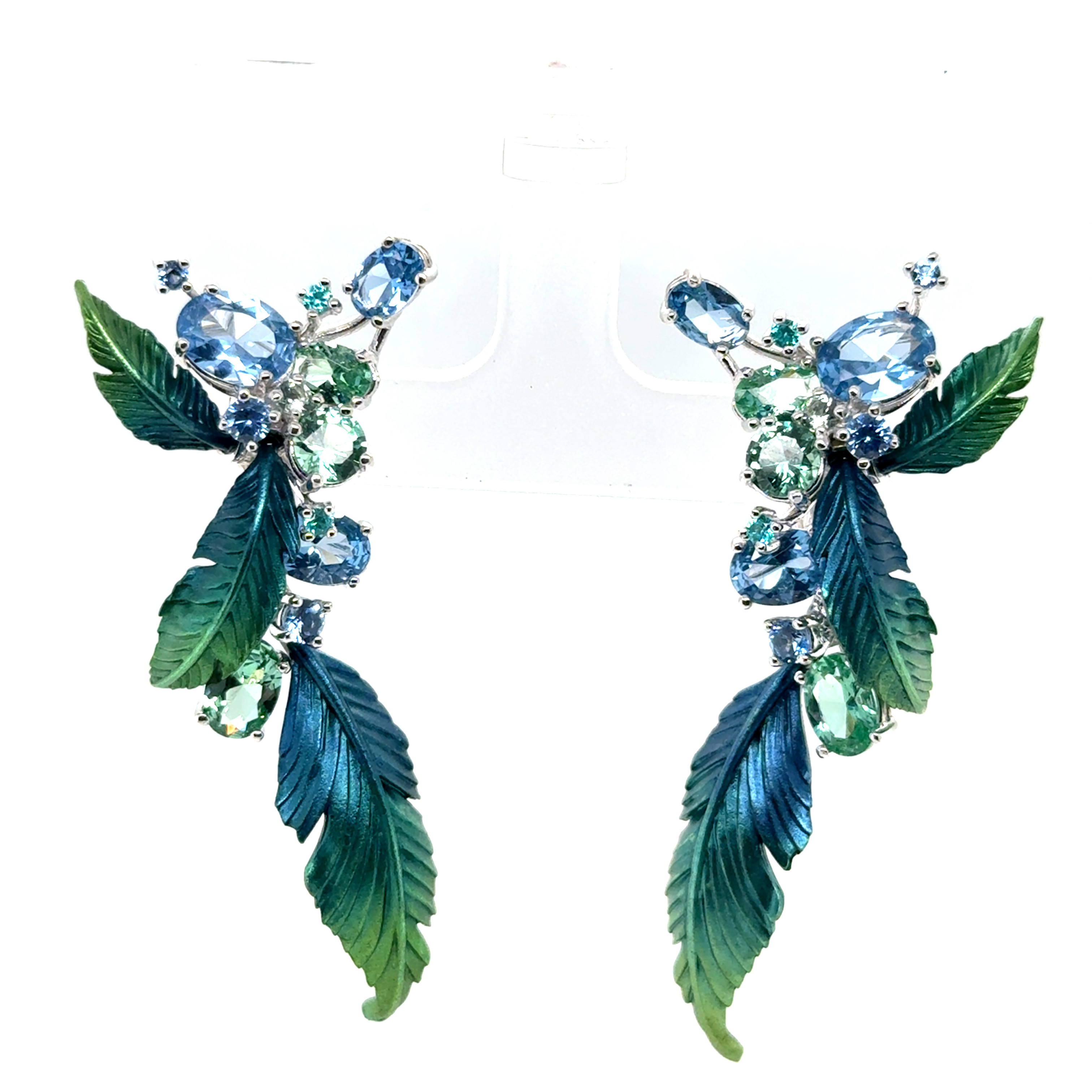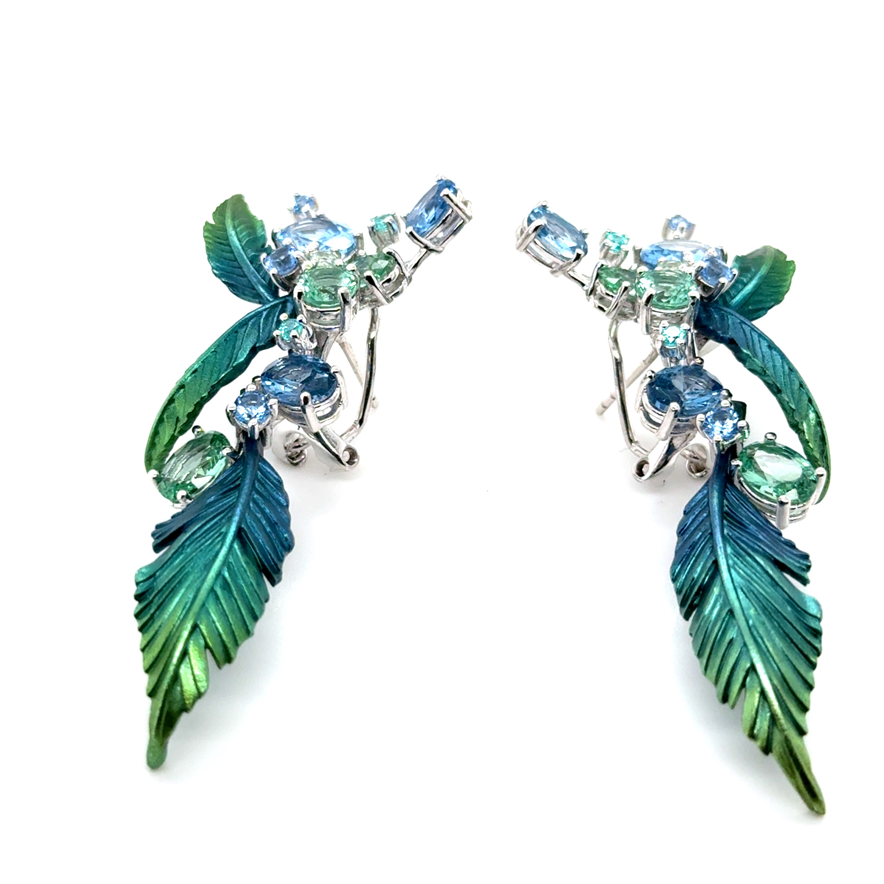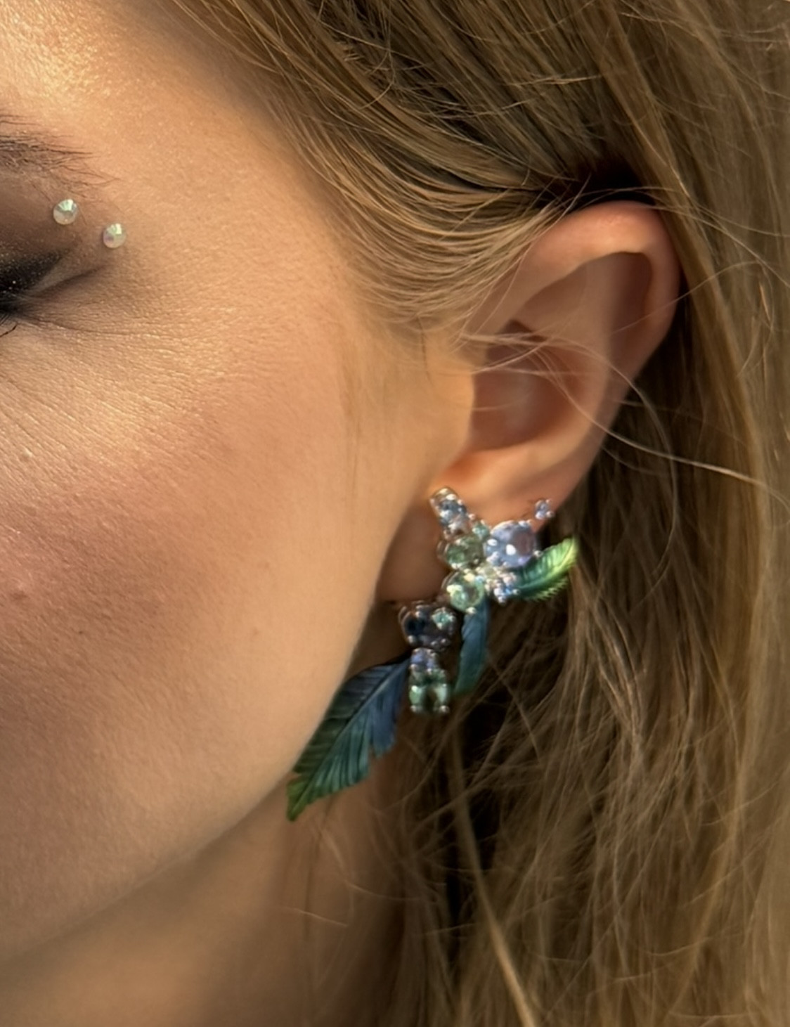Обеци от "Jacklin hugasian" в сребро с цветно покритие, топаз и турмалин.