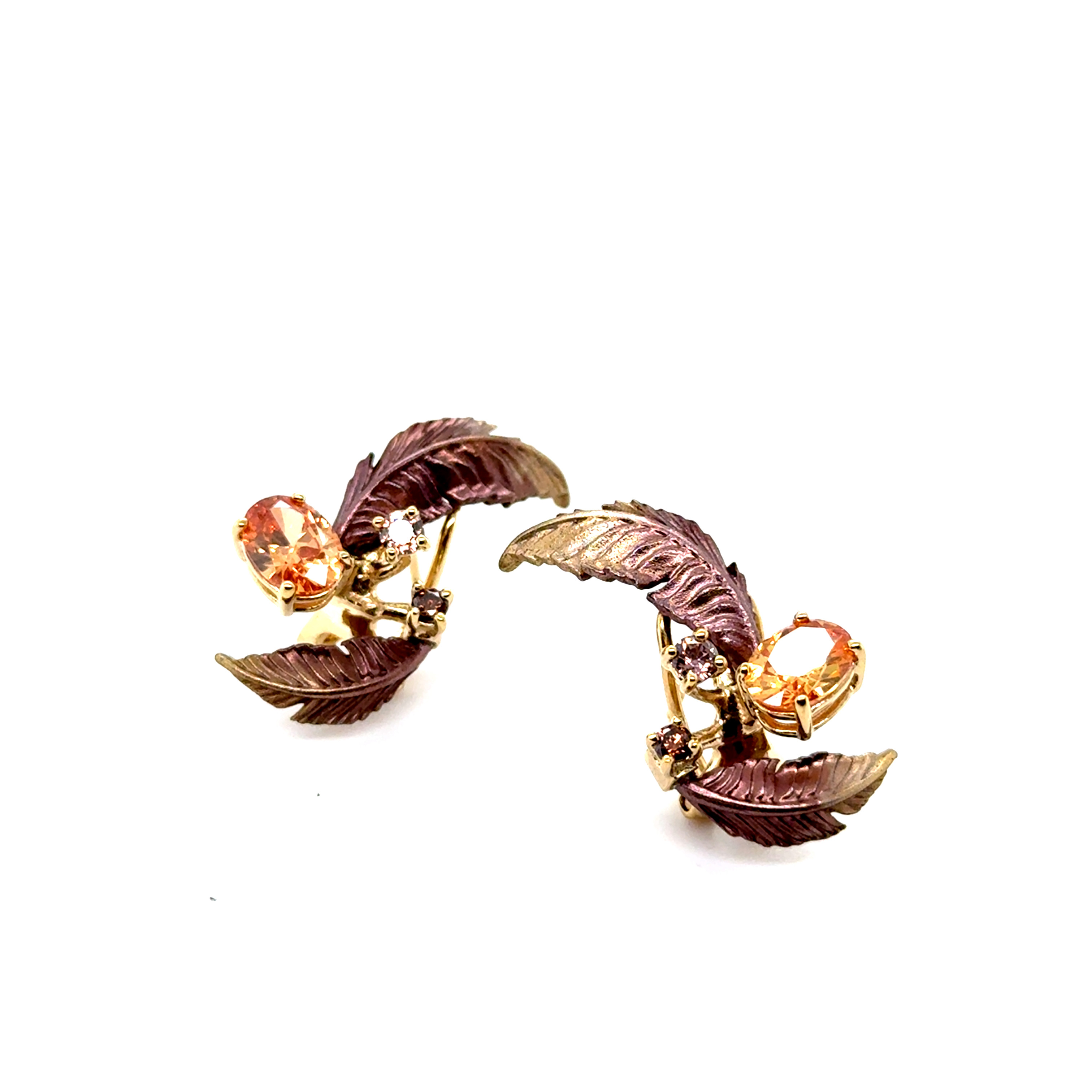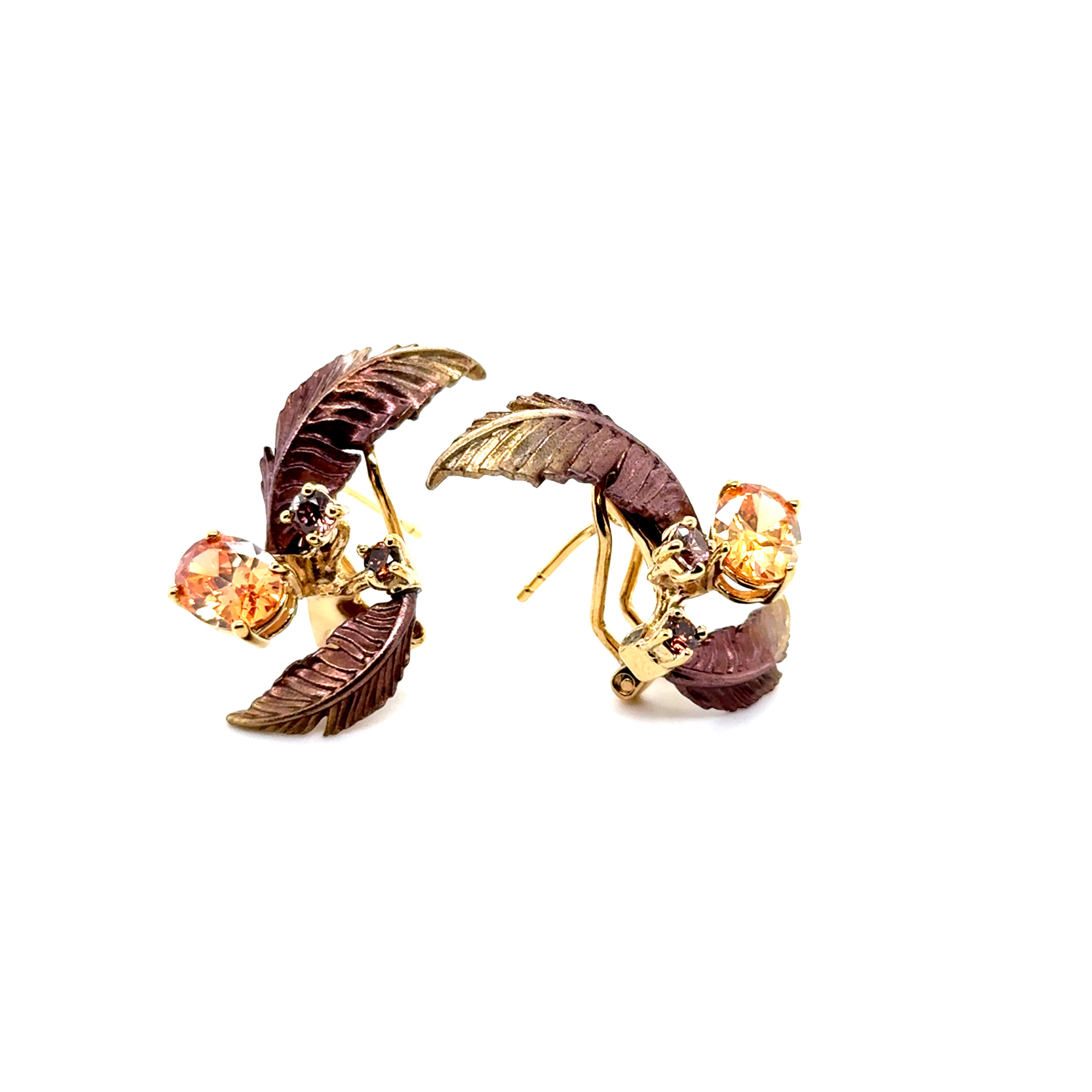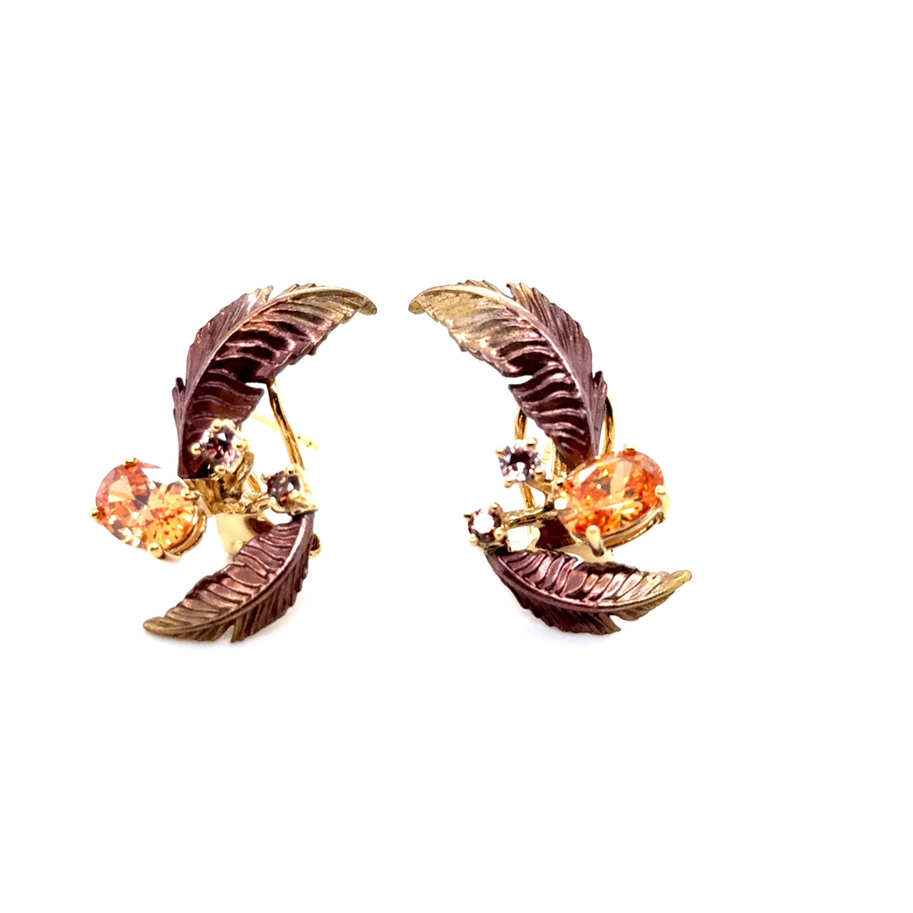 Обеци от "Jacklin hugasian" в цветно сребро с позлата,златист и опушен топаз