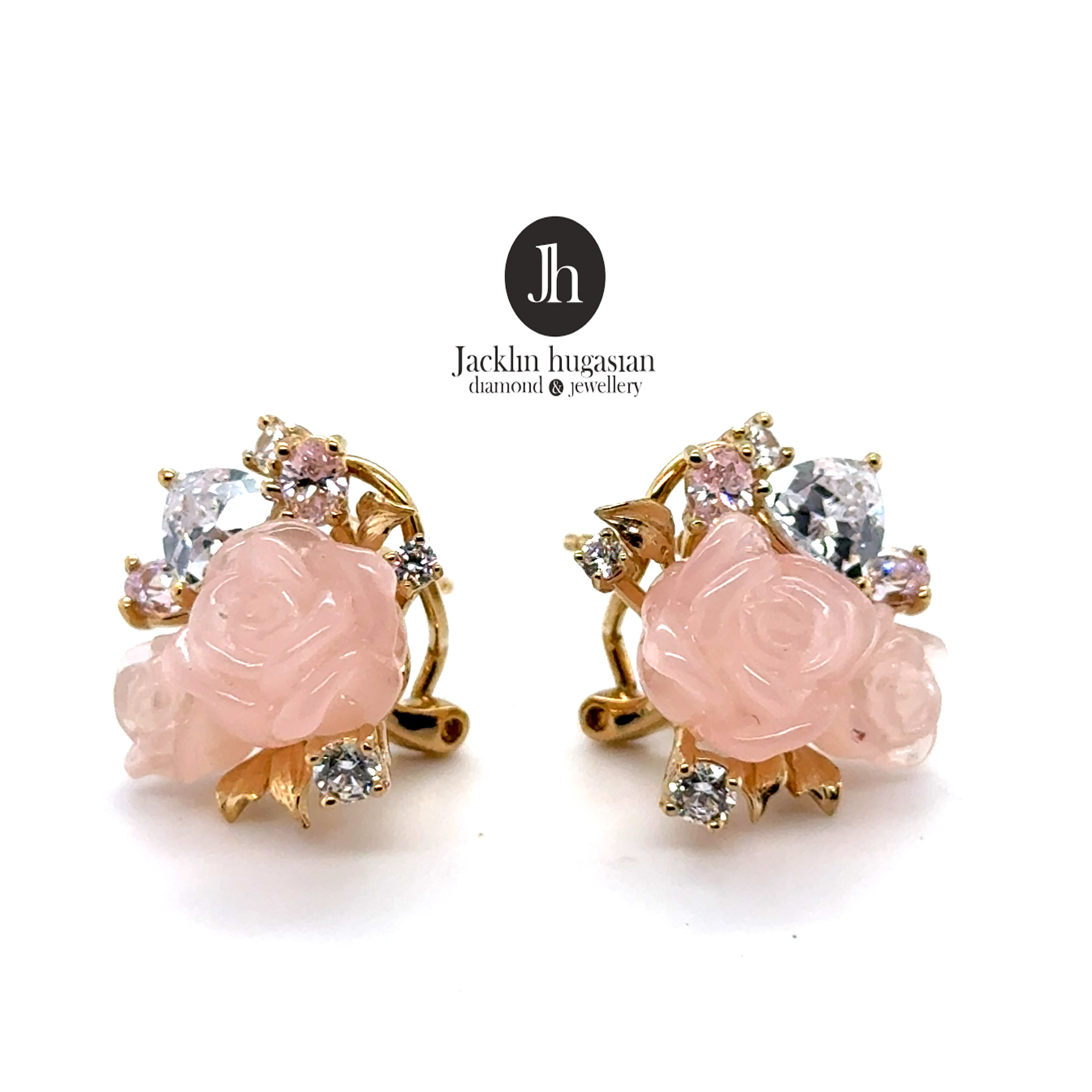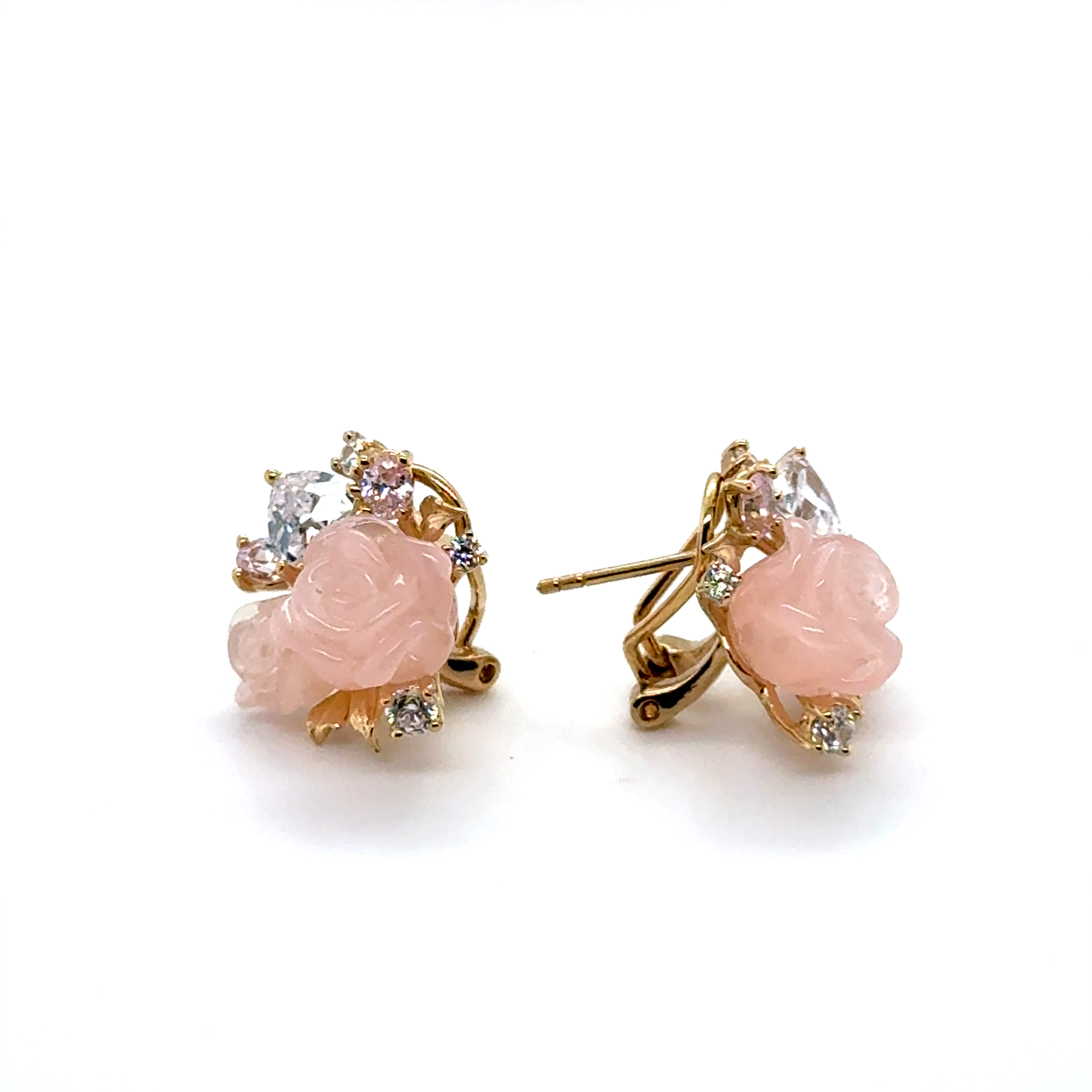 Обеци от “Jacklin hugasian” в сребро с позлата , розов кварц и циркони