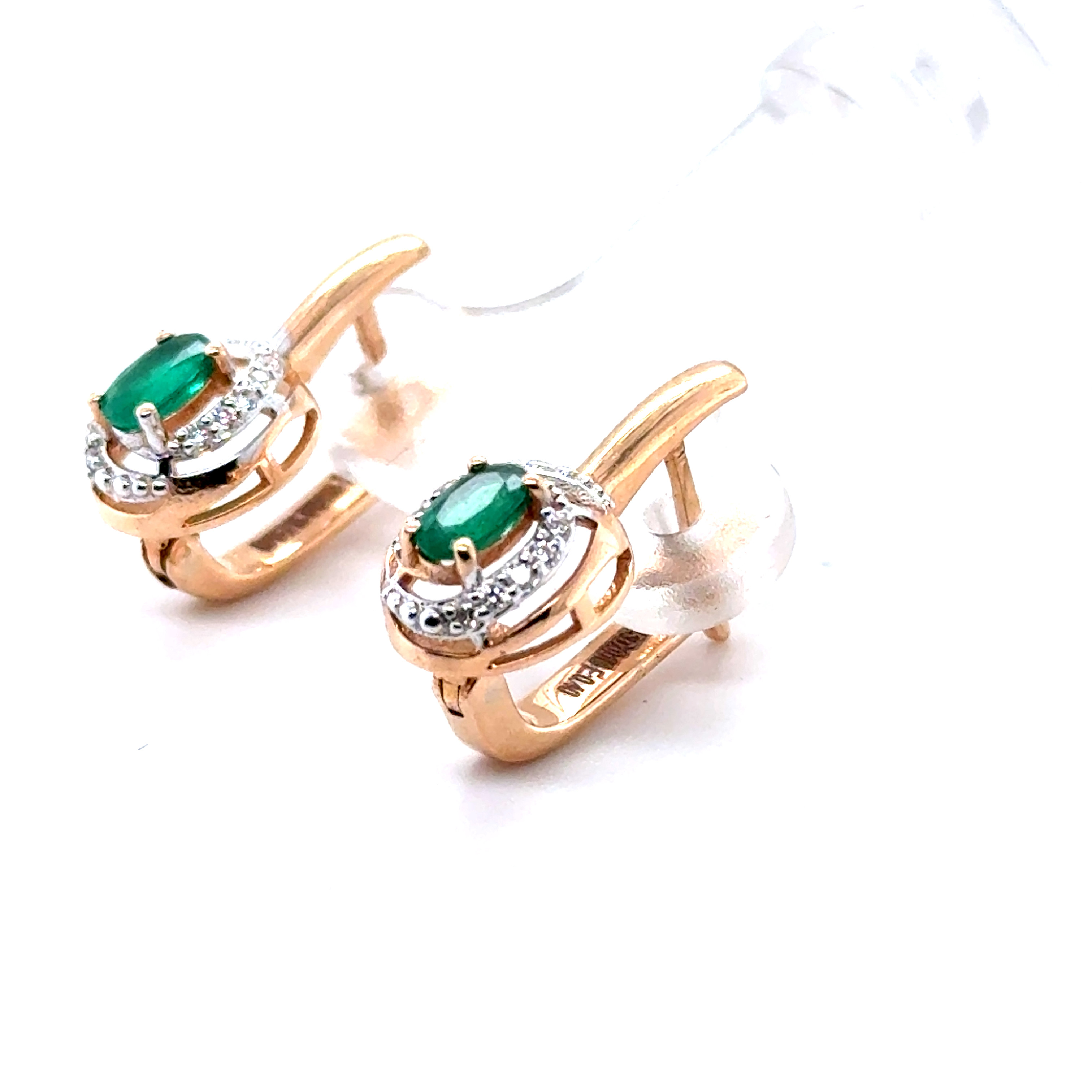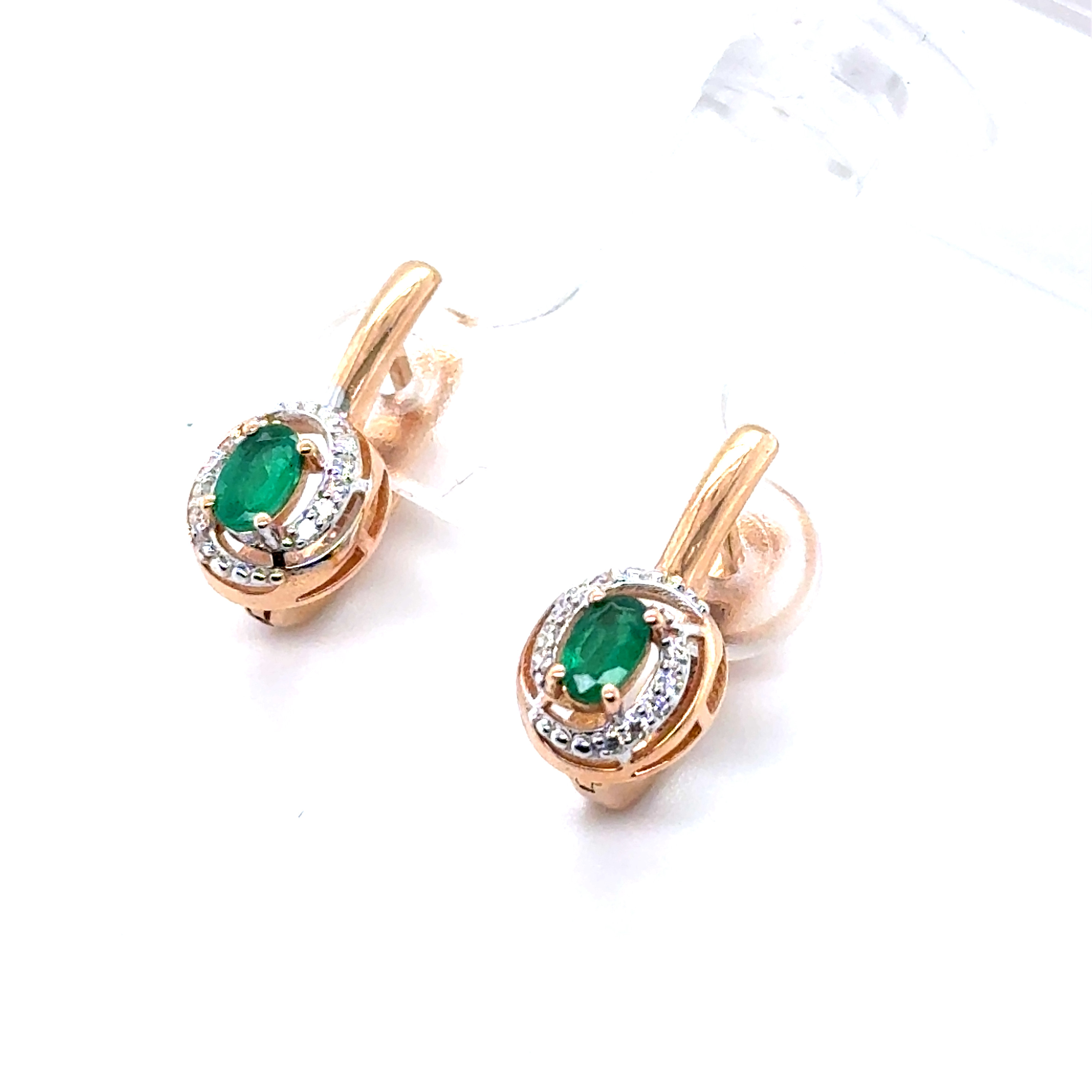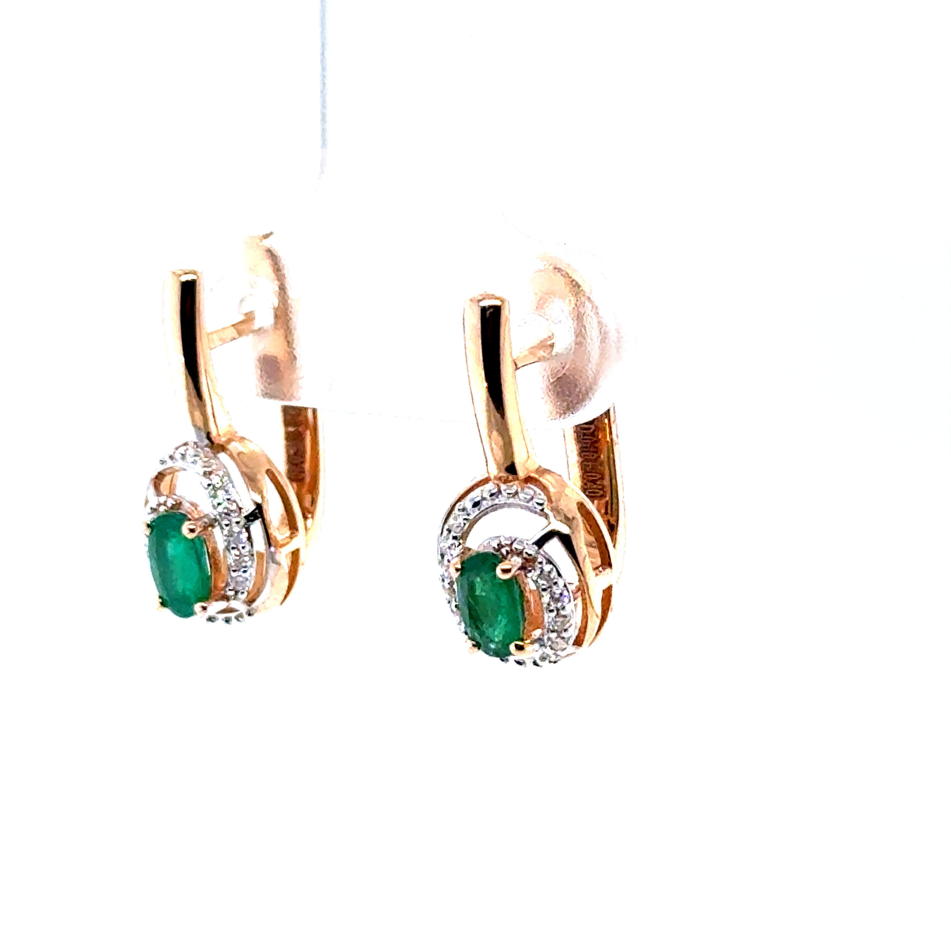Обеци от "Jacklin hugasian" в розово злато с изумруд и диаманти.