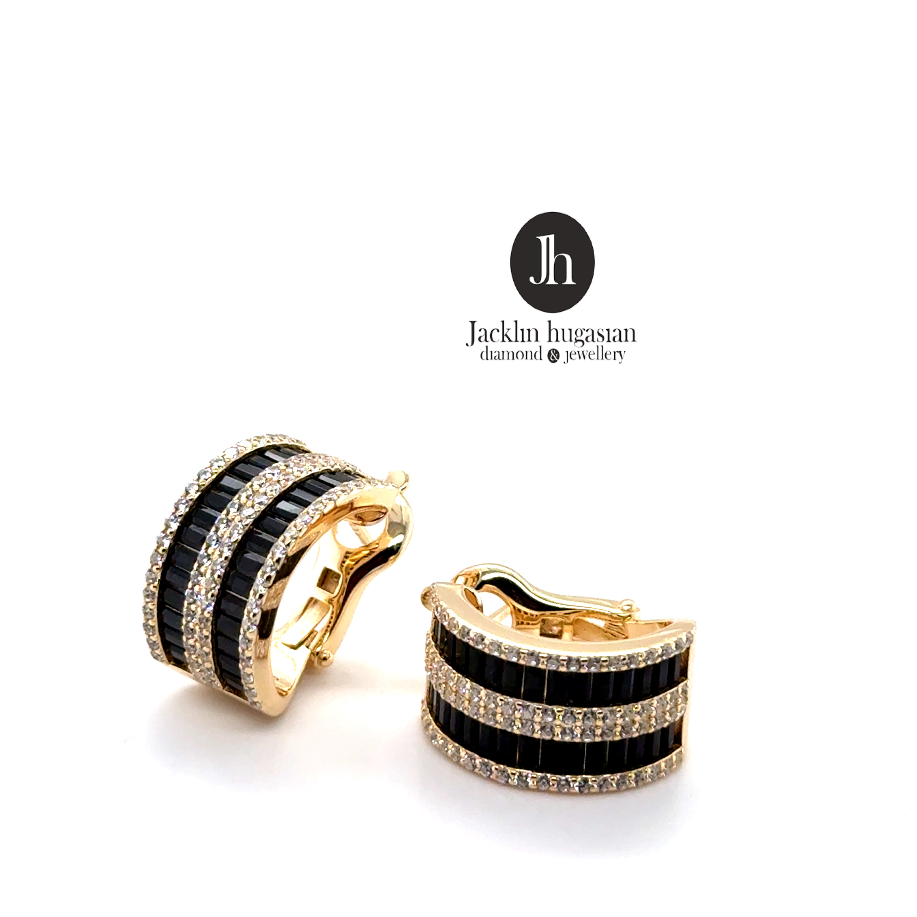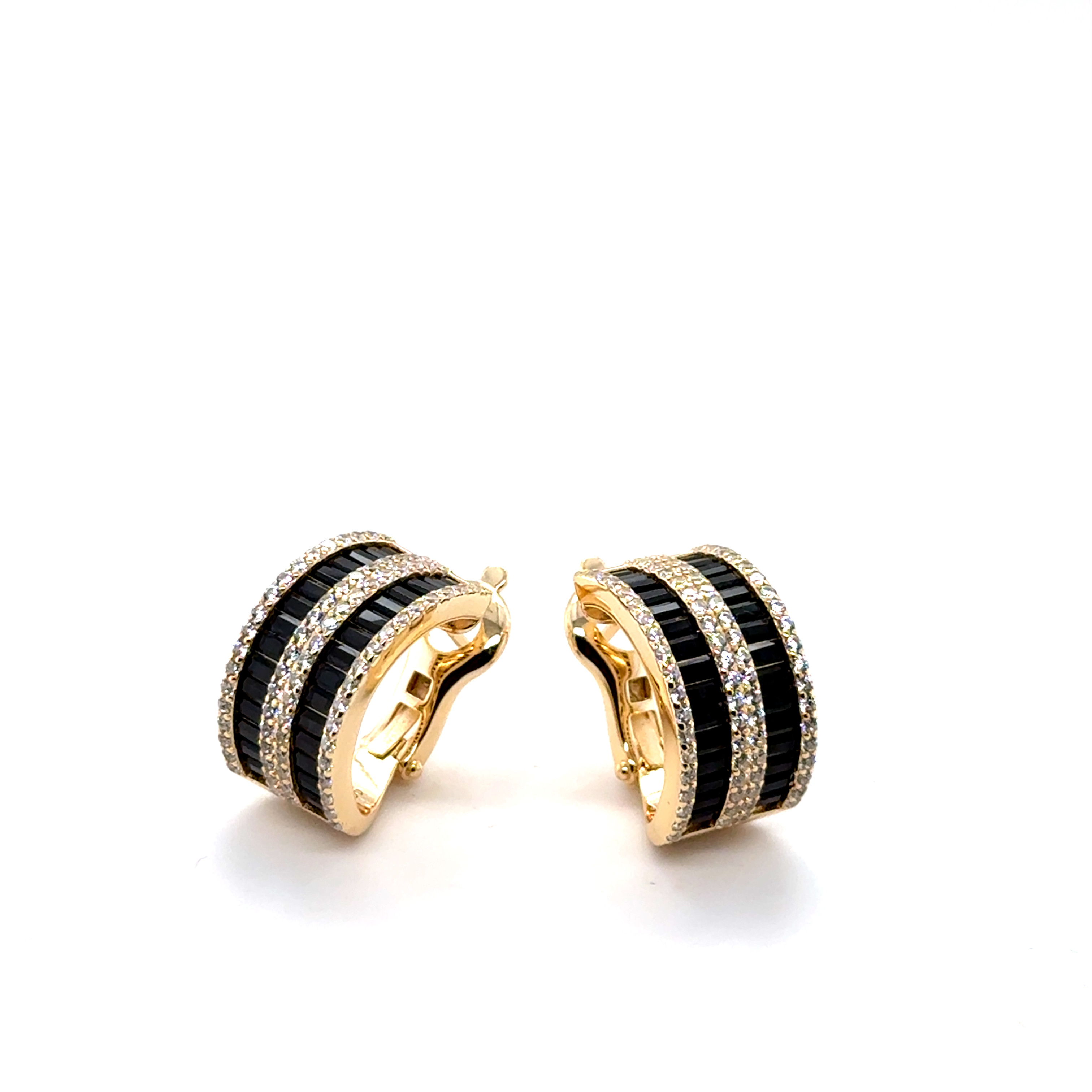 Обеци от "Jacklin hugasian" в сребро с позлата, с оникс и циркони.