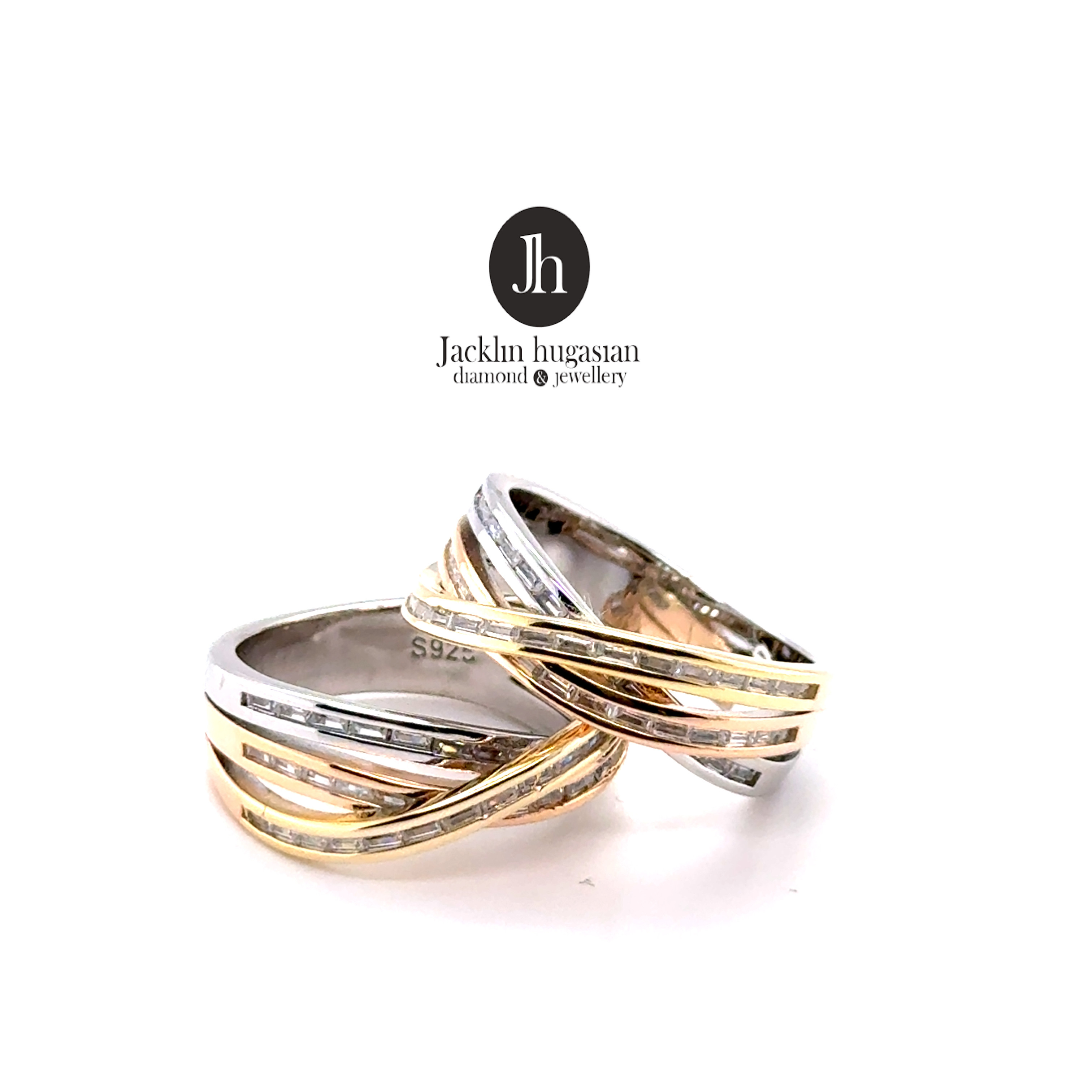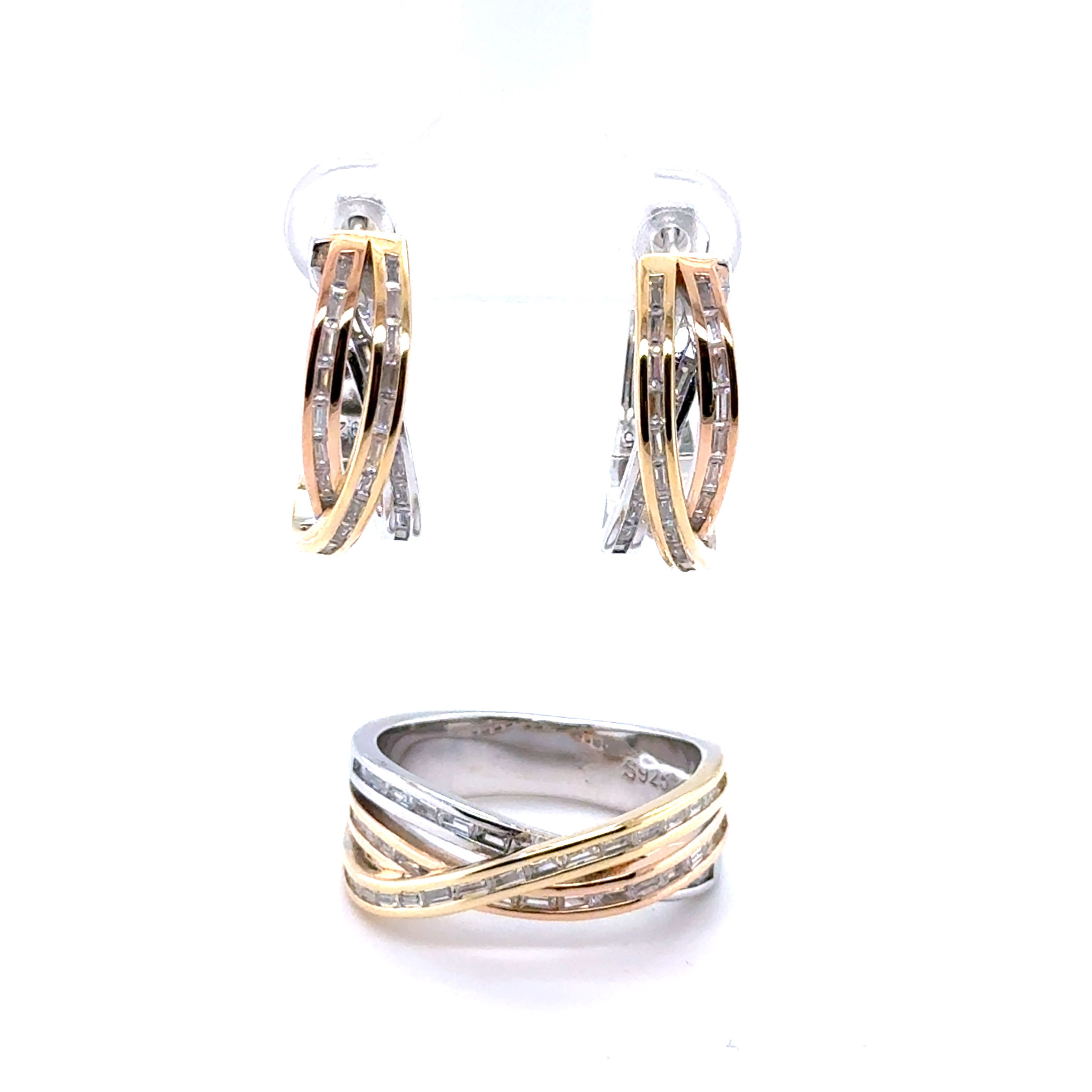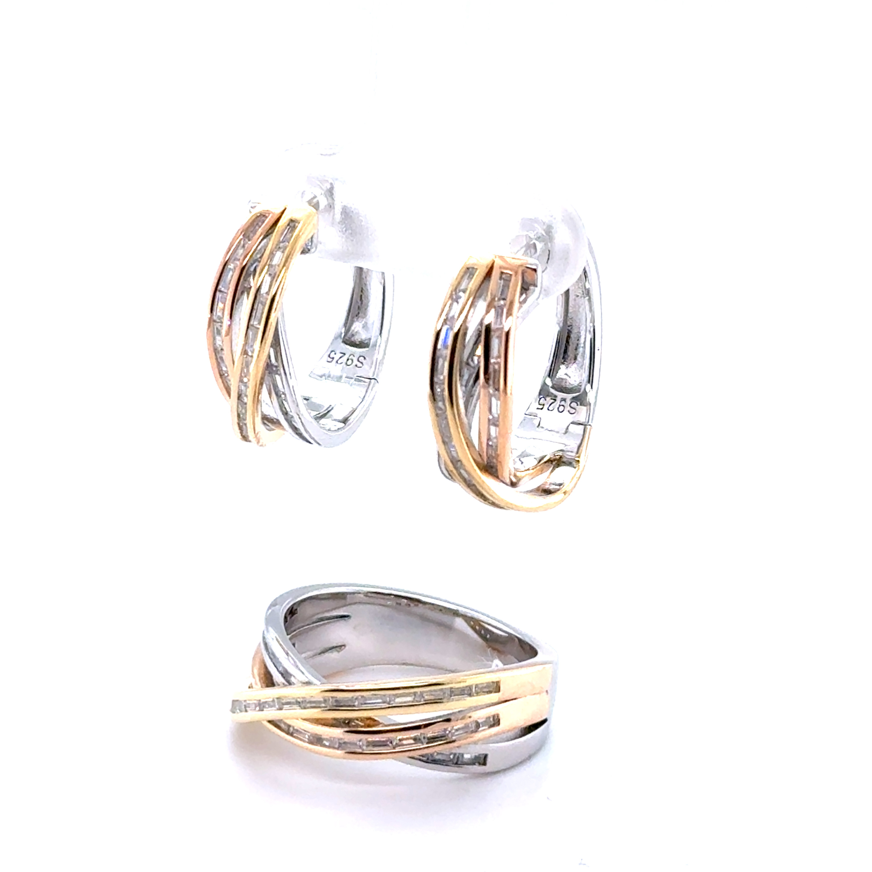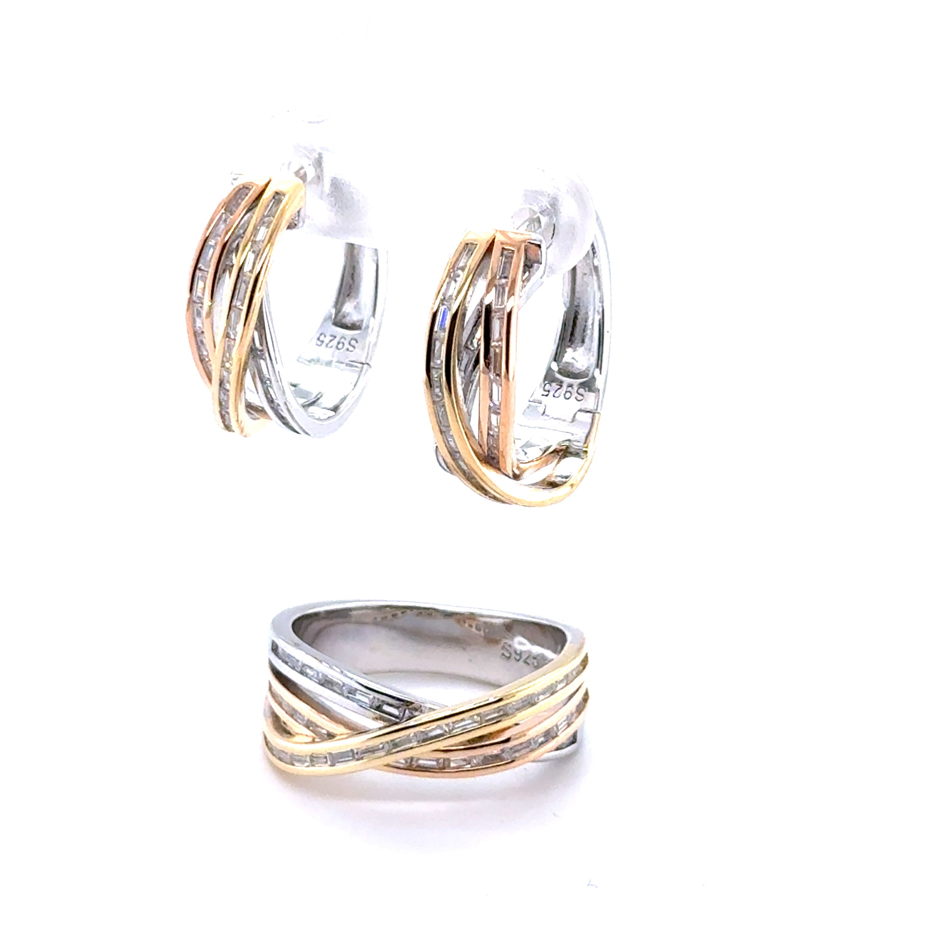 Комплект, обеци и пръстен от “Jacklin hugasian” в сребро с позлата и циркони
