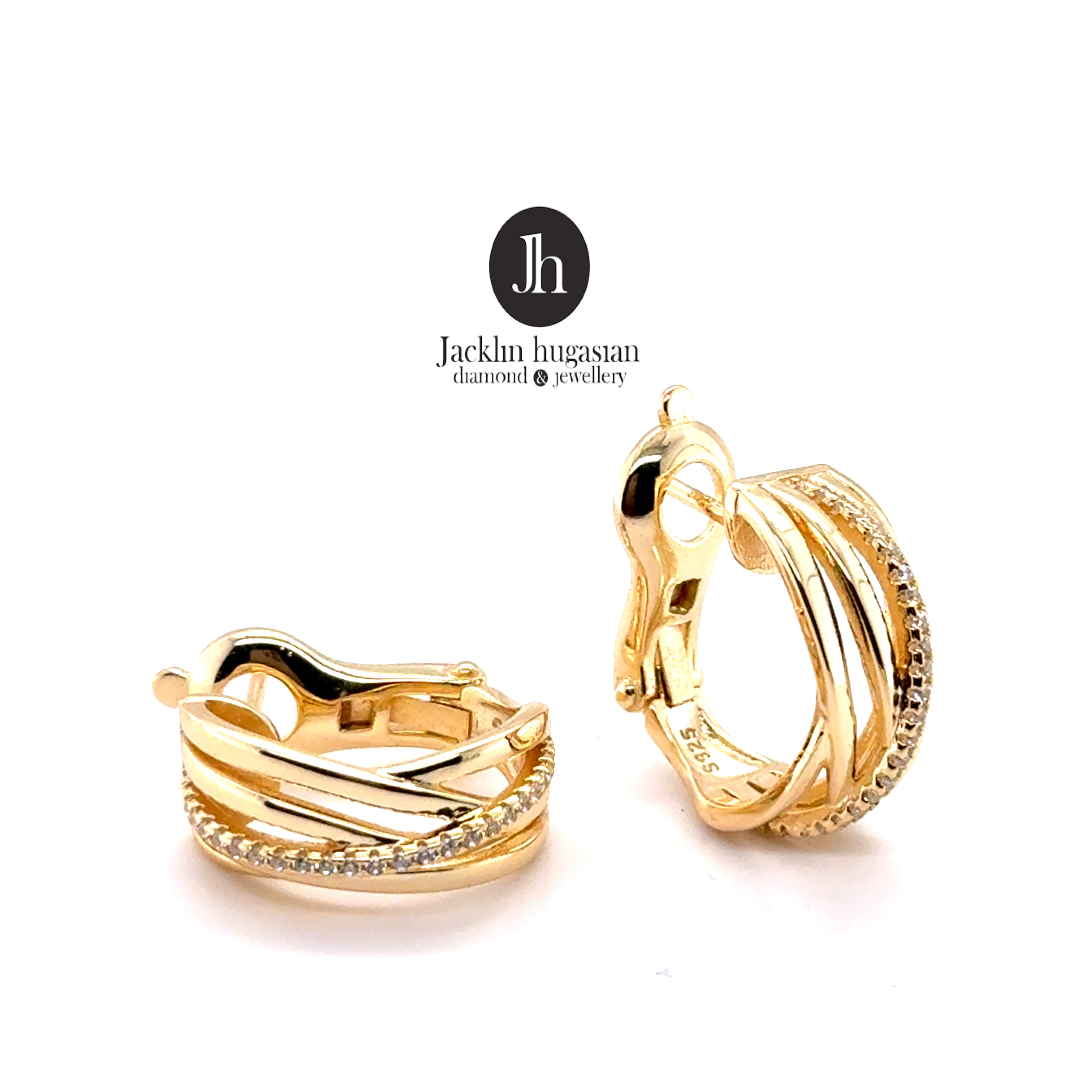 Обеци от "Jacklin hugasian" в сребро с позлата и циркони