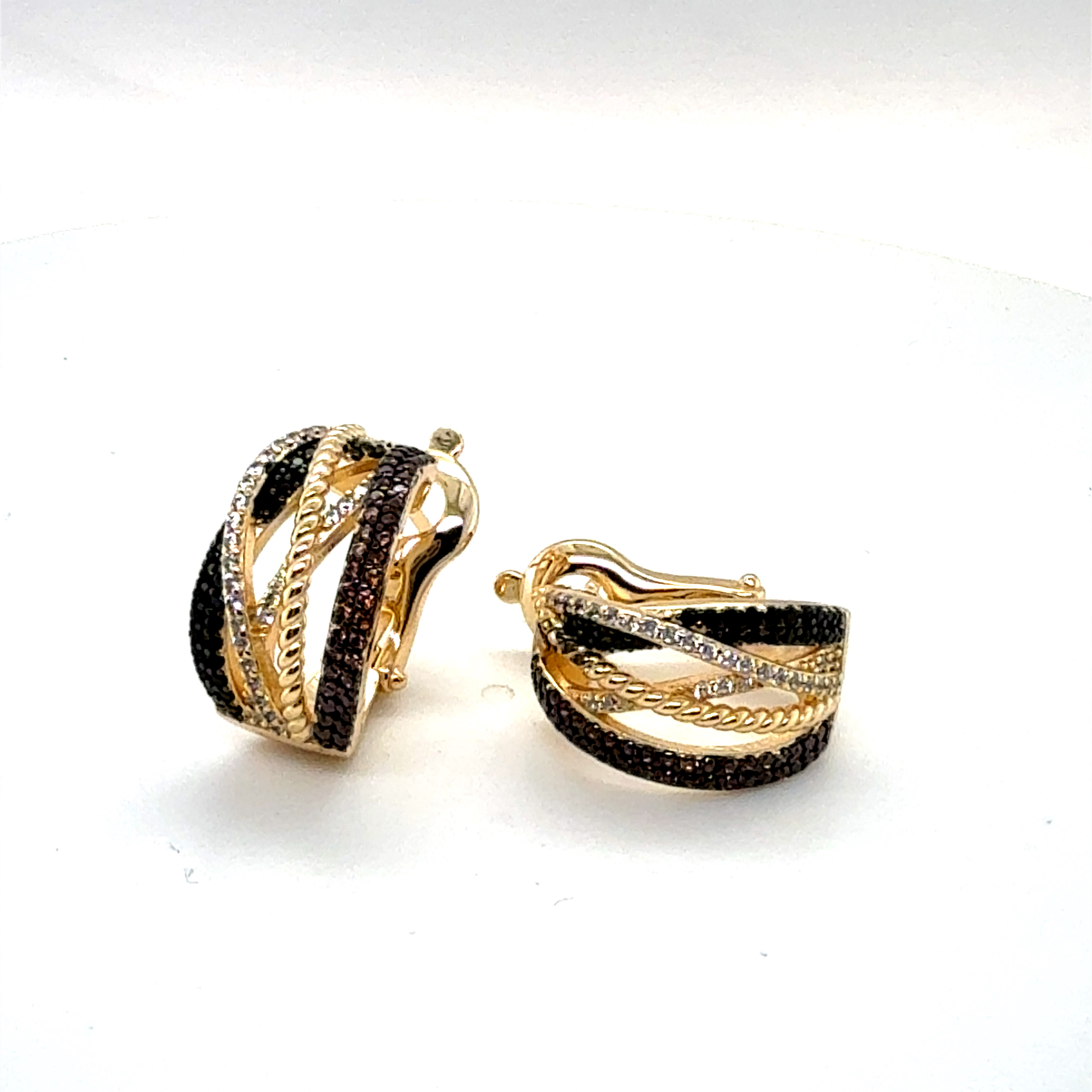 Обеци от "Jacklin hugasian" в сребро с позлата, с оникс, опушен топаз и циркони.