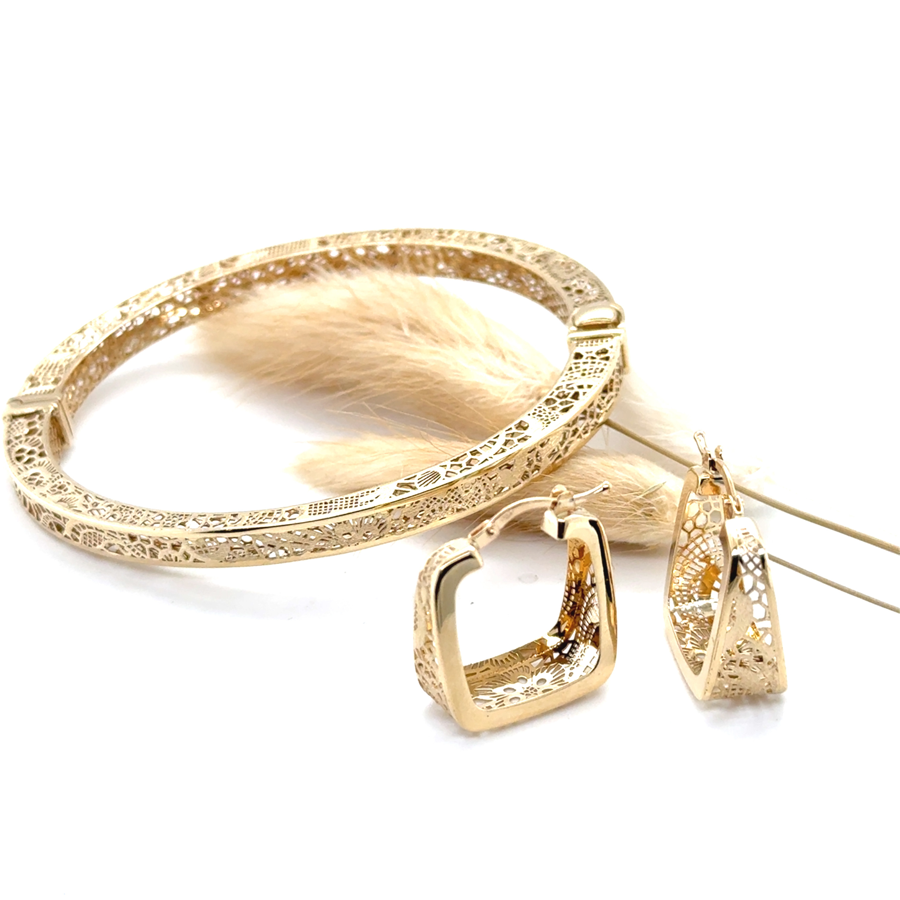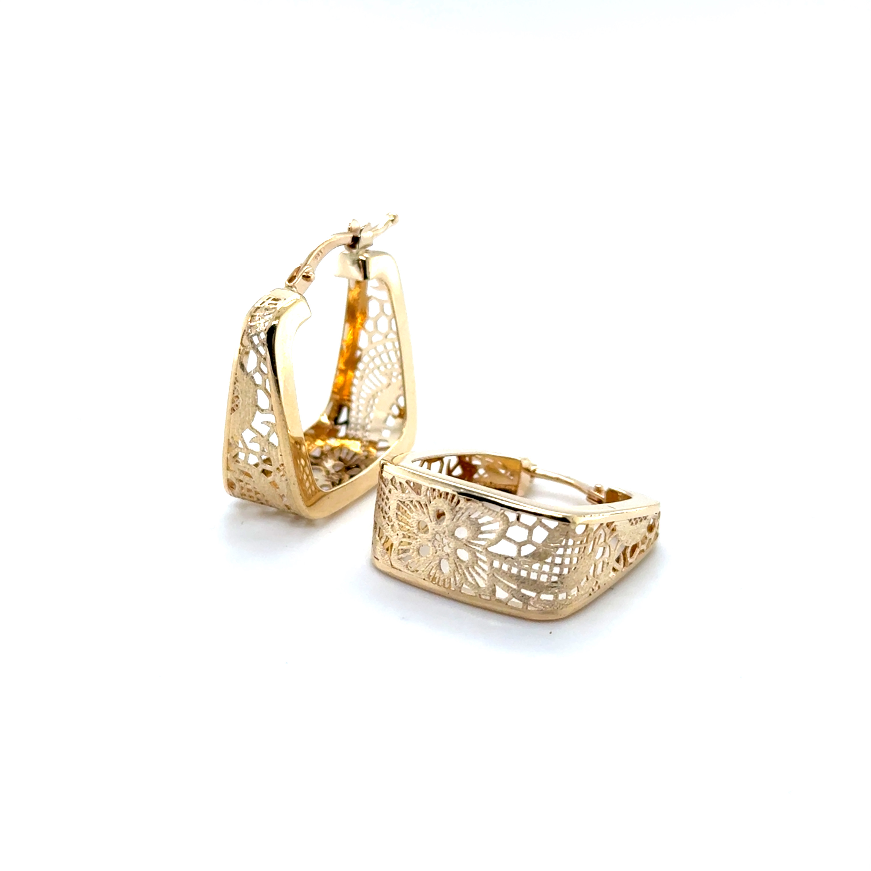 Обеци от “Jacklin hugasian” в жълто злато мат и гланц.Филигранна изработка.