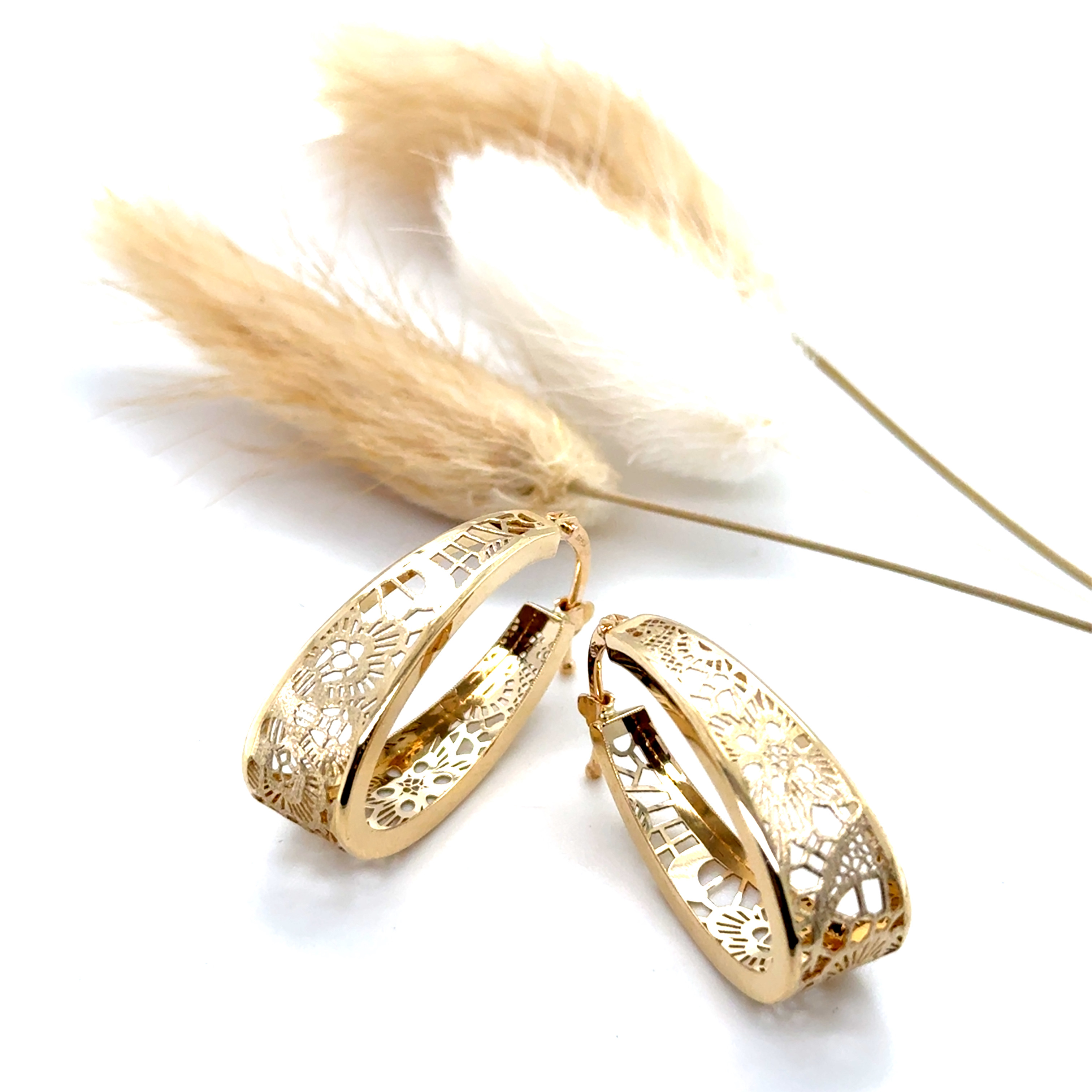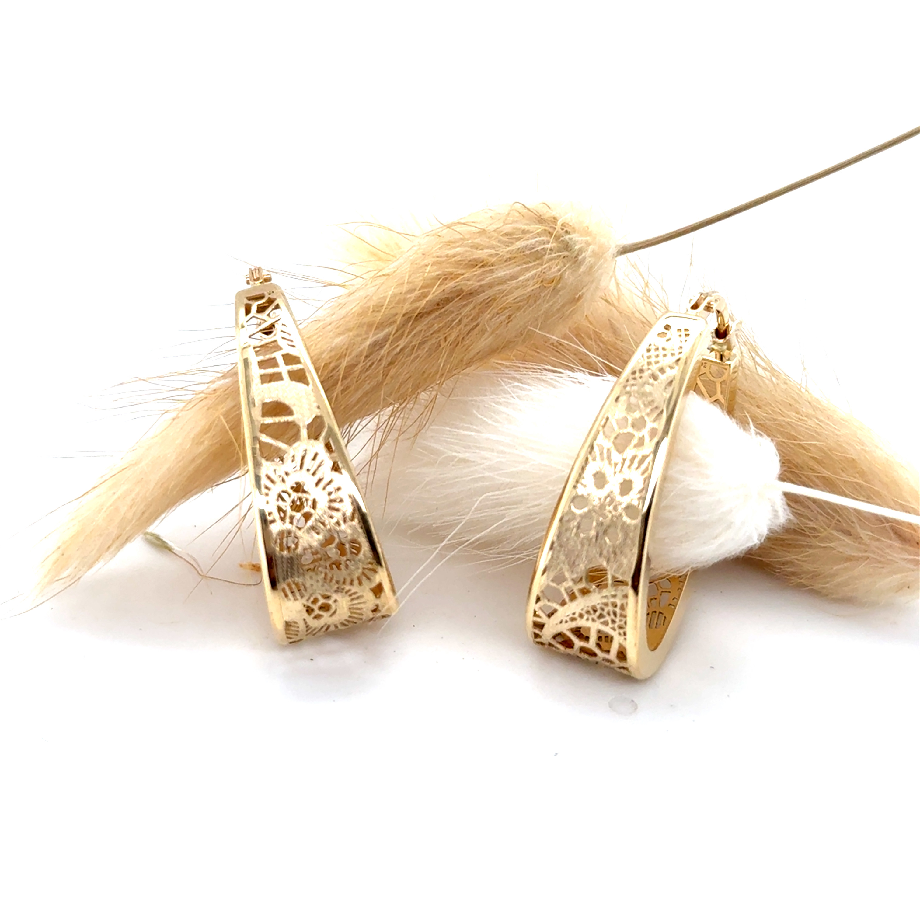 Обеци от “Jacklin hugasian” в жълто злато мат и гланц.Филигранна изработка.