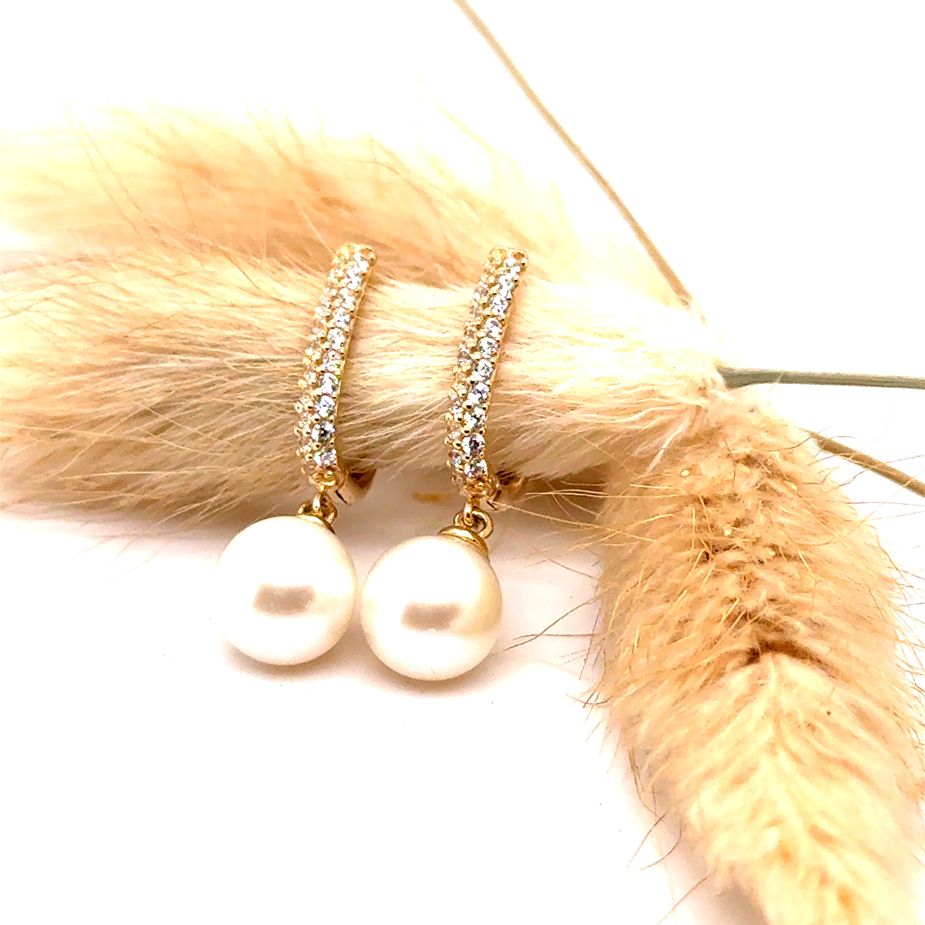 Обеци от “Jacklin hugasian” в жълто злато с перла и циркони