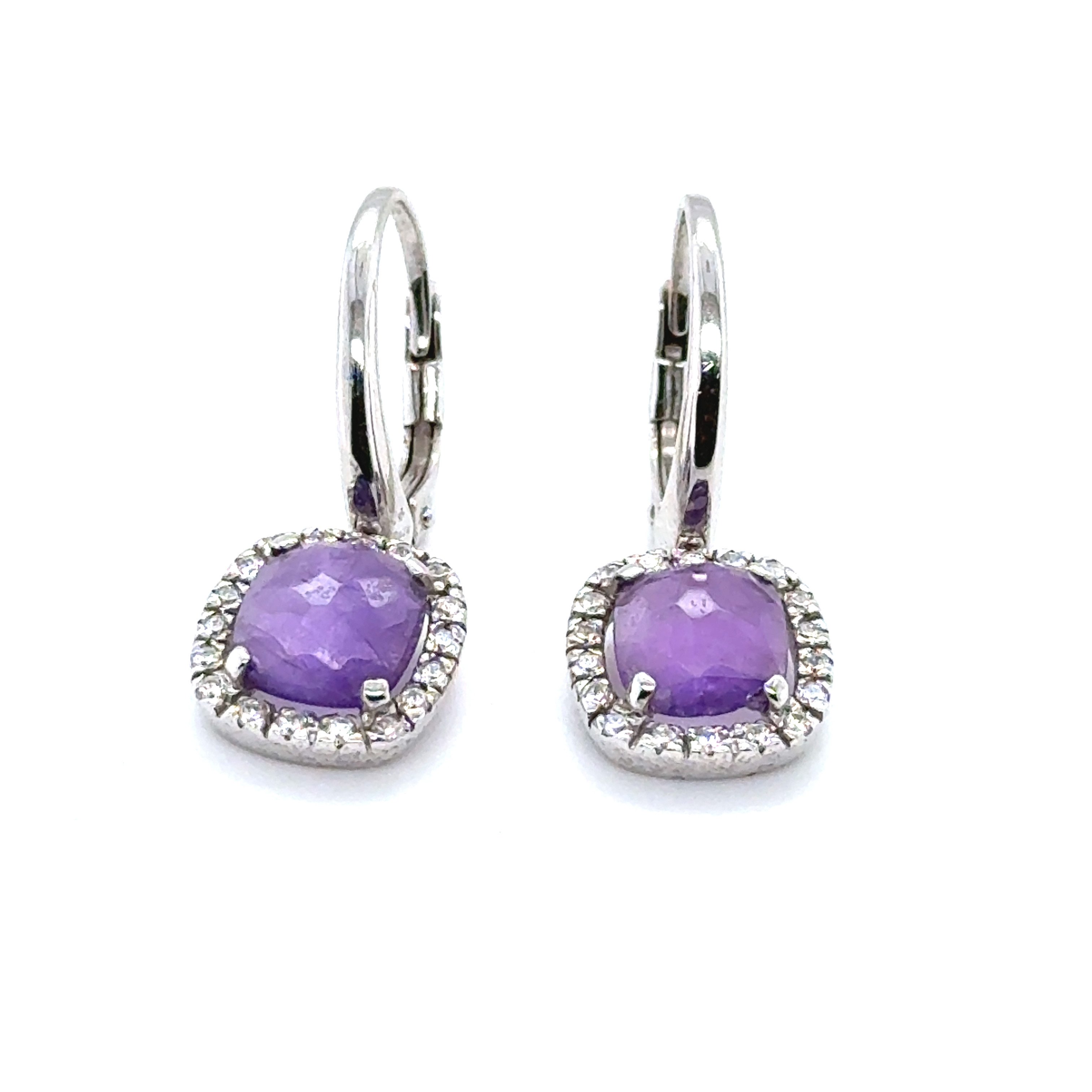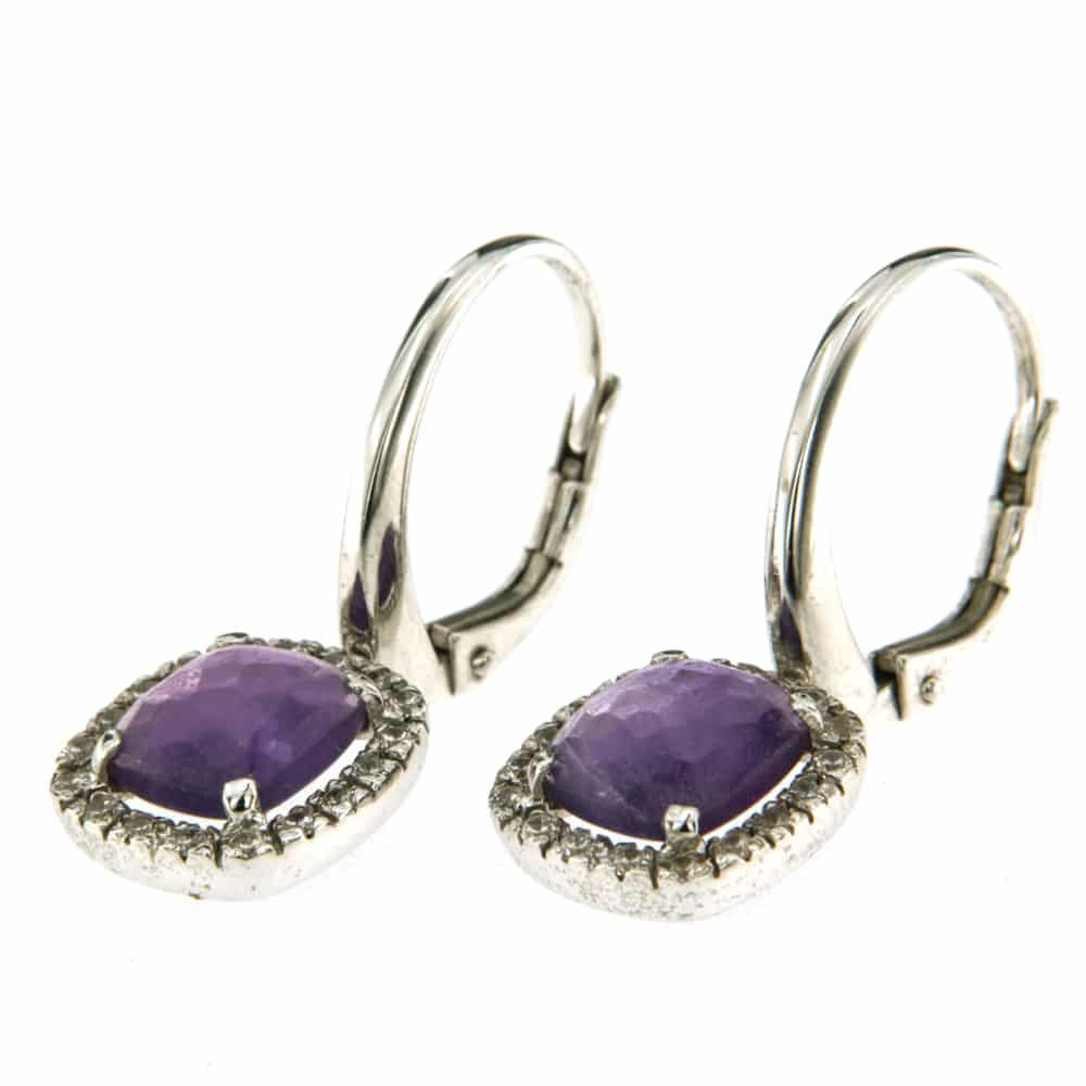 Обеци от " Jacklin hugasian " в бяло злато с аметист и цирконии.