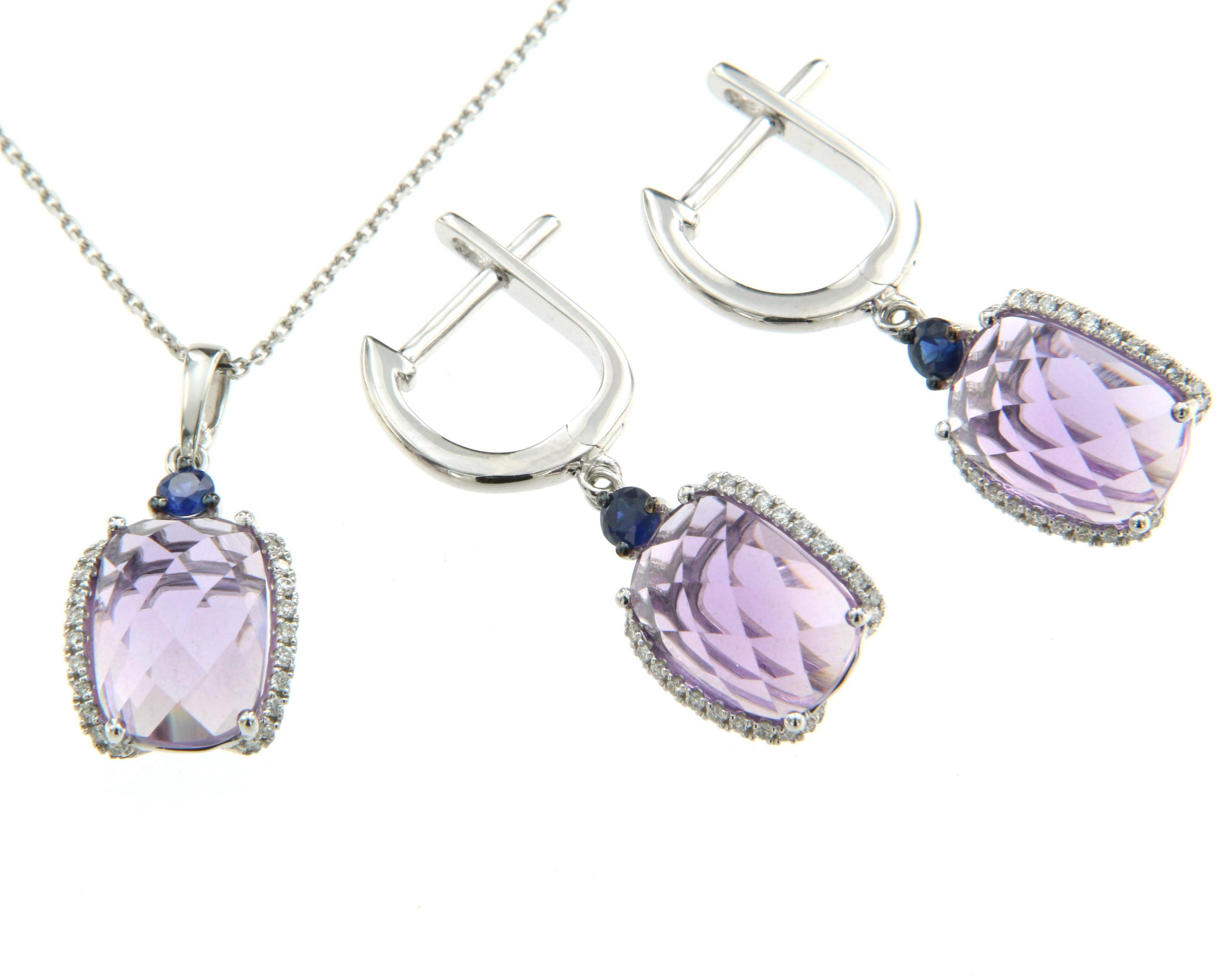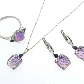 Характеристики: H/ VS/ Dia: 0.11 ct./ аметист: 4.27 ct./ сапфир : 0.20 ct.