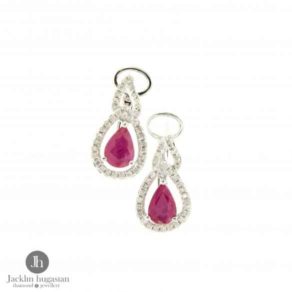 Обеци от "Jacklin hugasian" в бяло злато с рубин и диаманти.