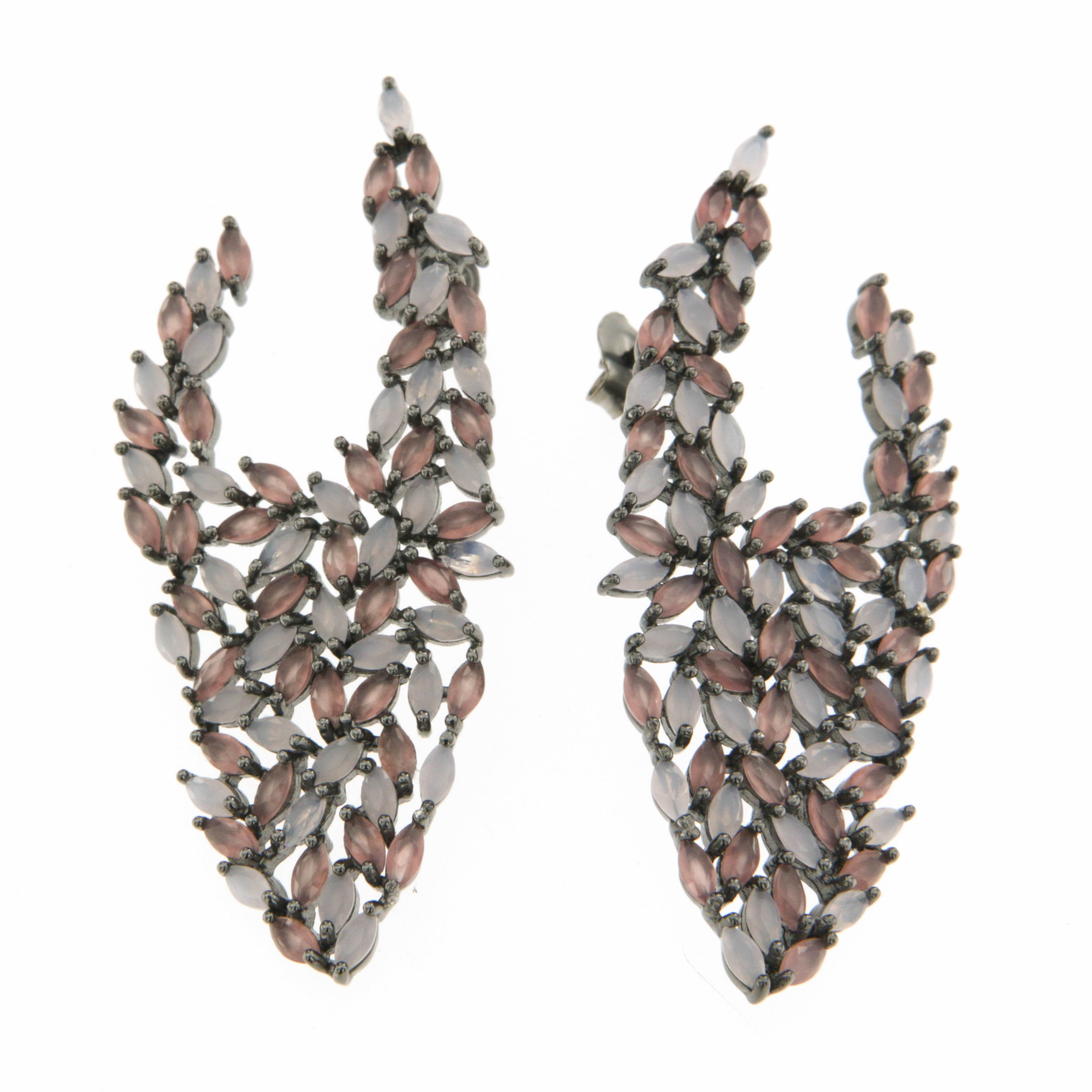 Обеци от "Jacklin hugasian" в оксидирано сребро с лунен камък и розов кварц.