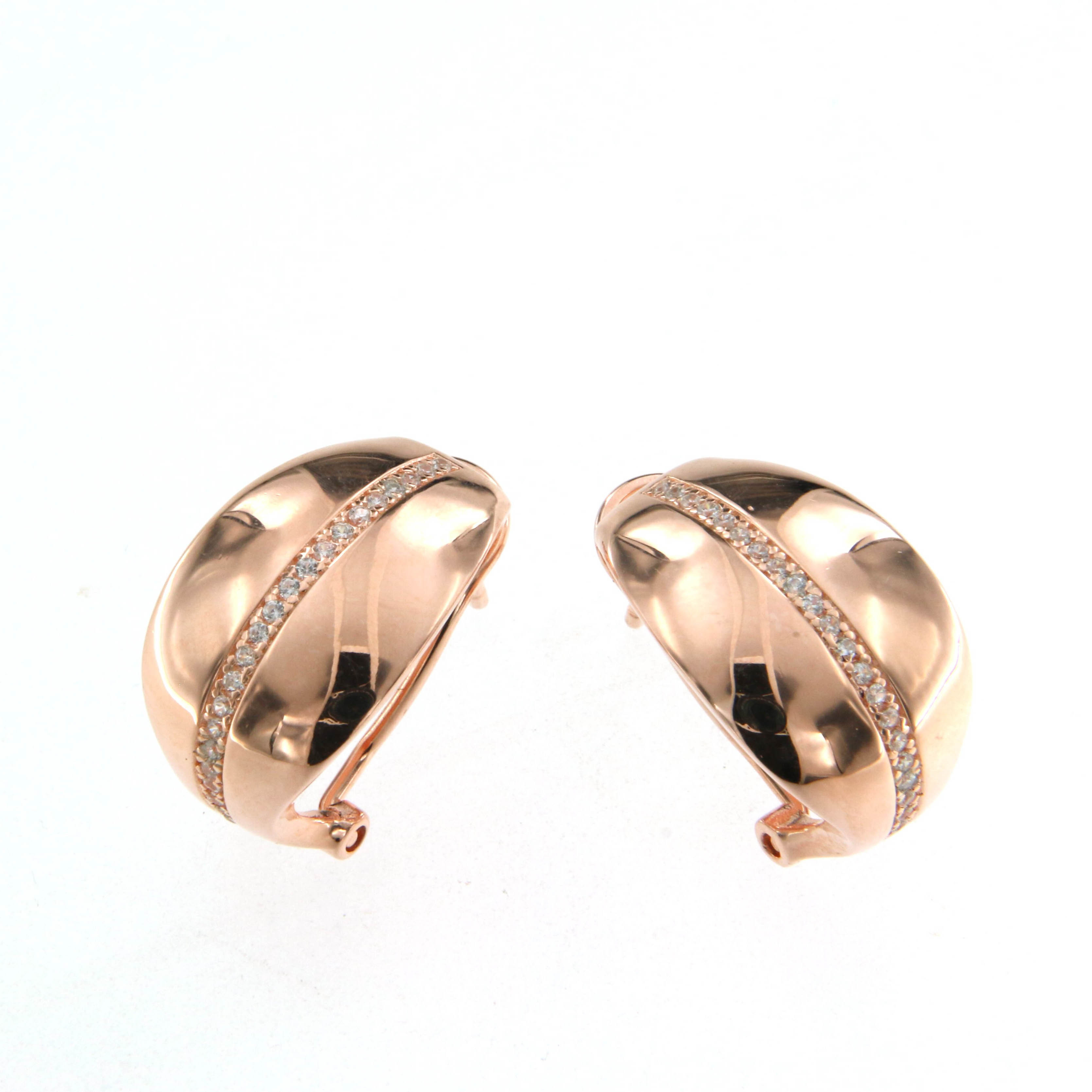 Обеци от “Jacklin hugasian” в розово сребро с циркони.