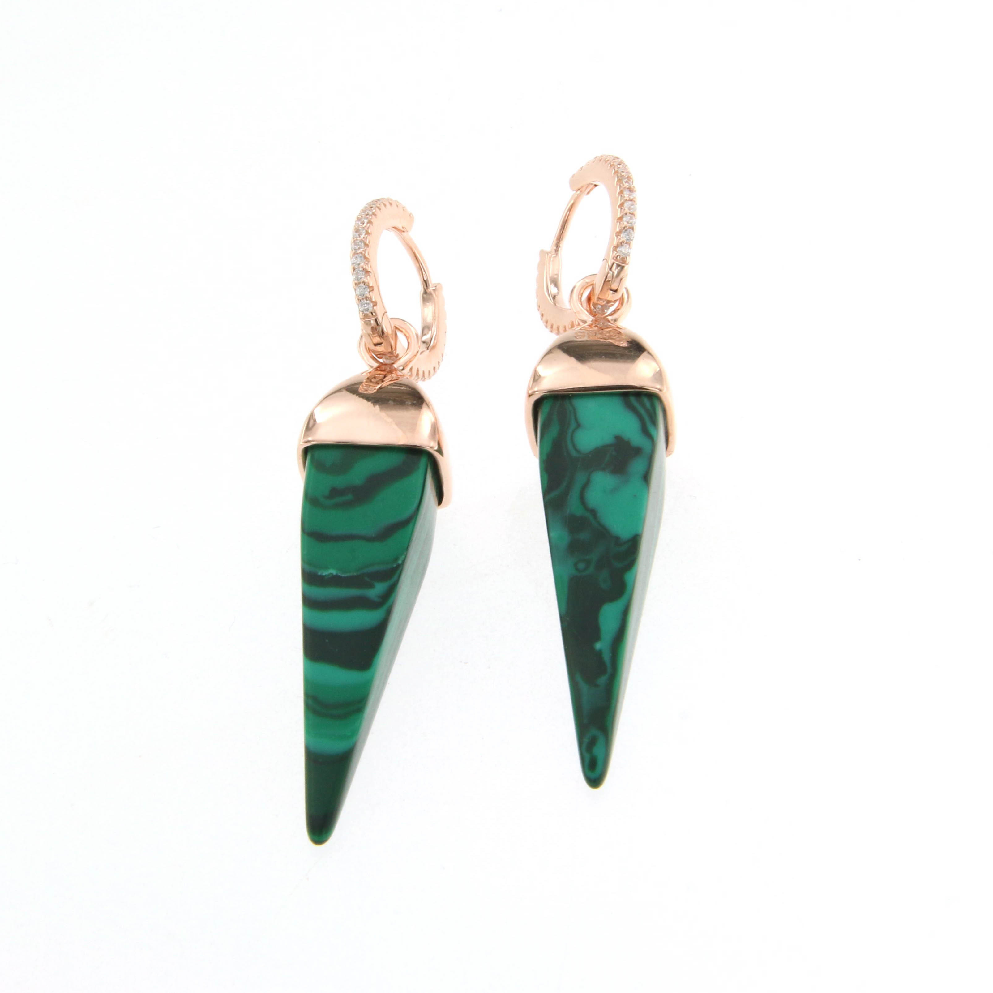 Обеци от “Jacklin hugasian” в розово сребро с малахит.