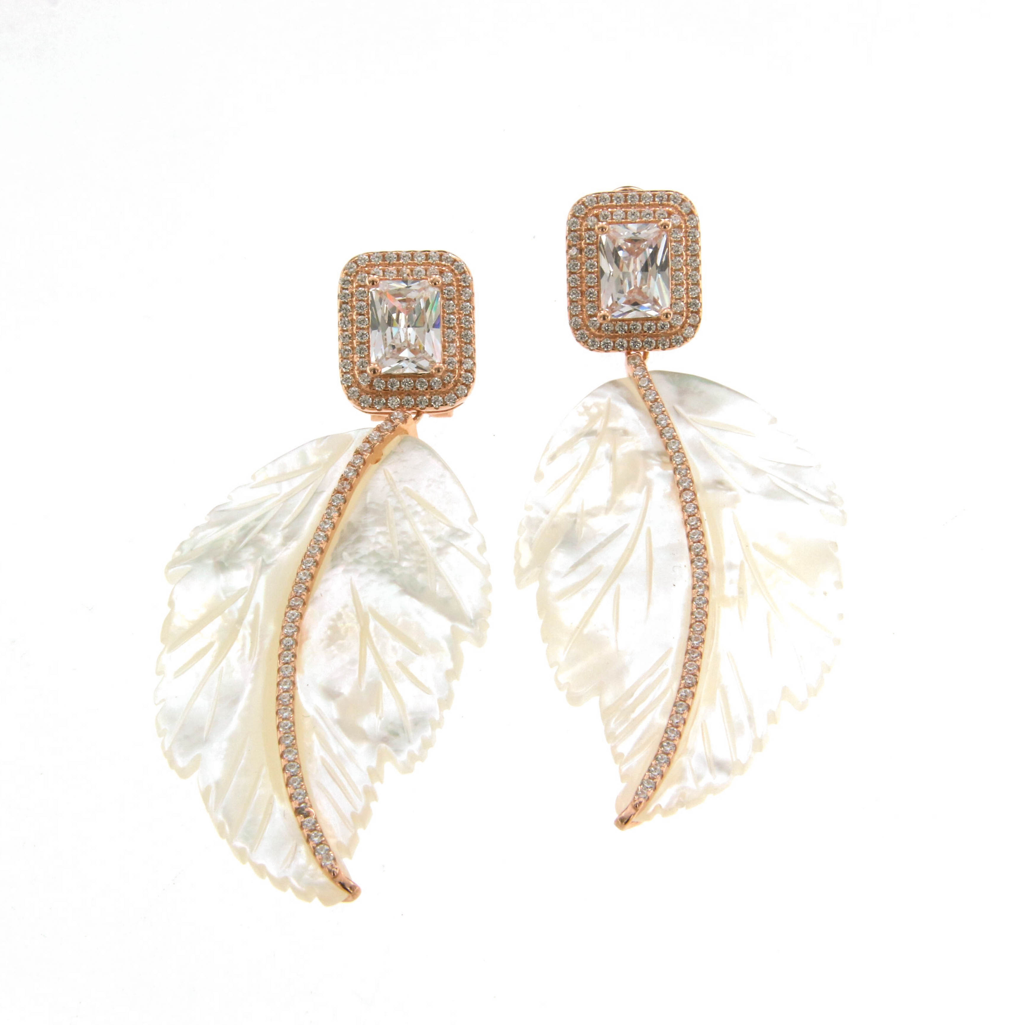 Обеци от “Jacklin hugasian” в розово сребро със седеф и цирконии.
