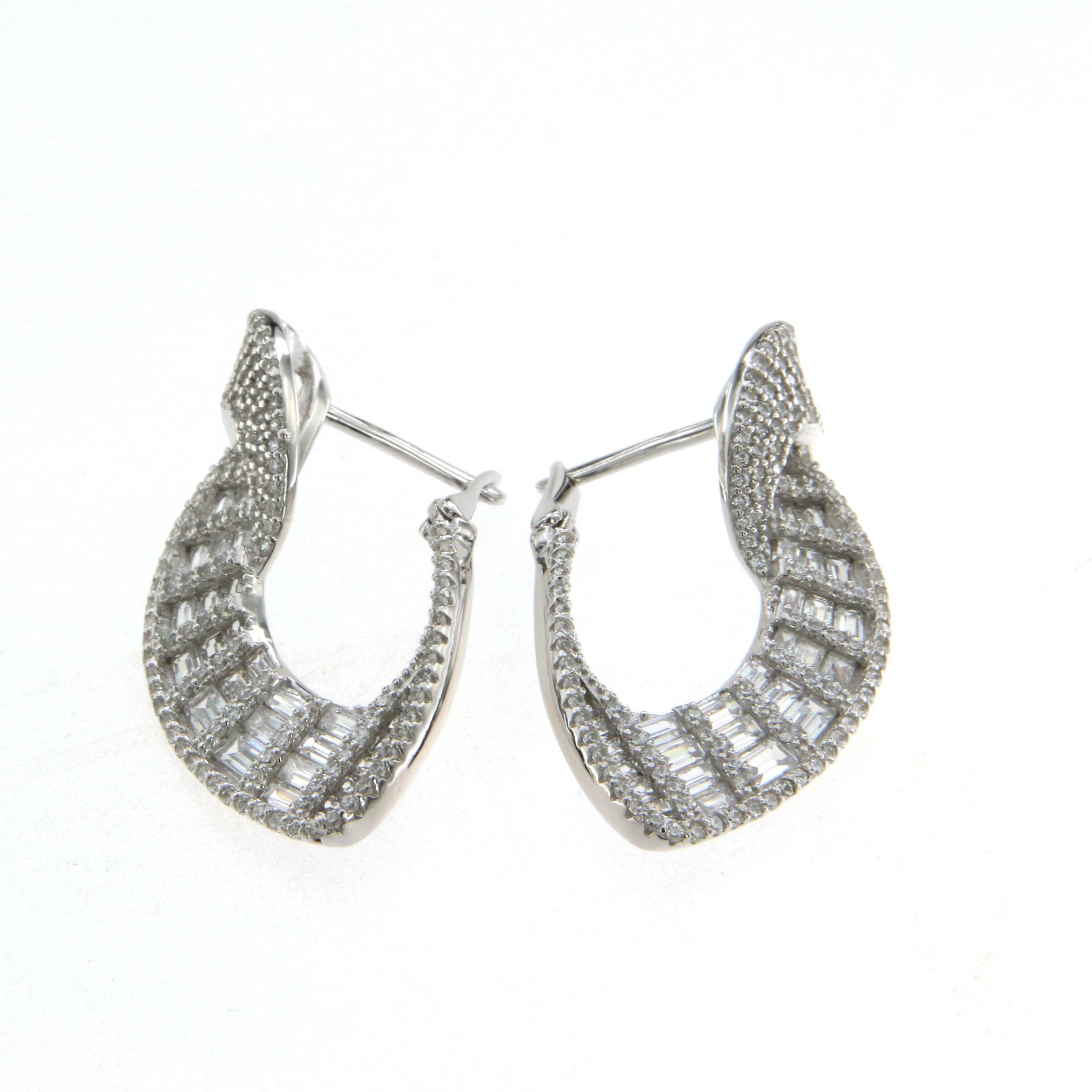 Обеци от "Jacklin hugasian" в сребро гланц с цирконии. Дължина обеци 3.2 см., широчина 1.8 см.