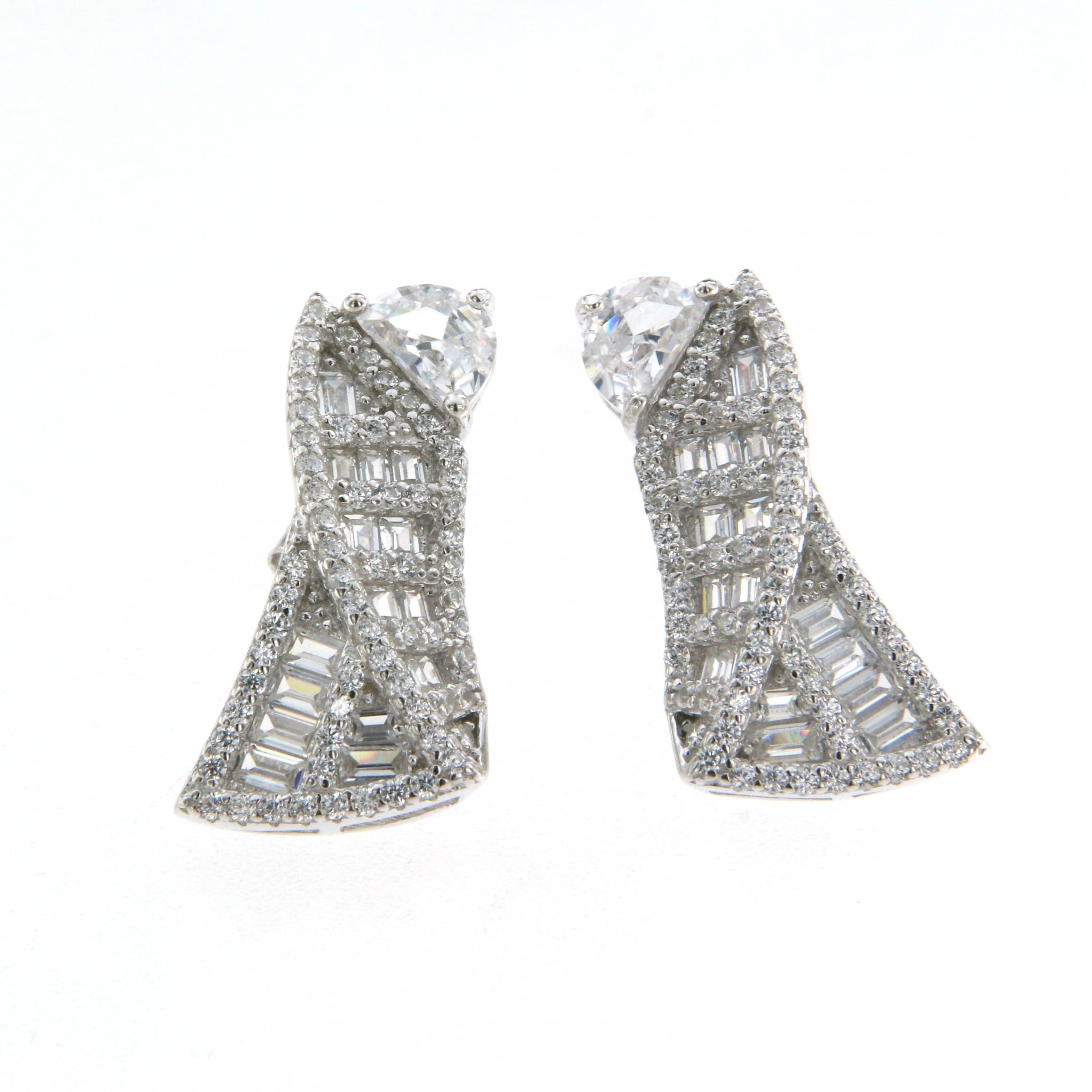 Обеци от "Jacklin hugasian" в сребро гланц с цирконии. Дължина обеци 2.2 см., широчина 1.2 см.