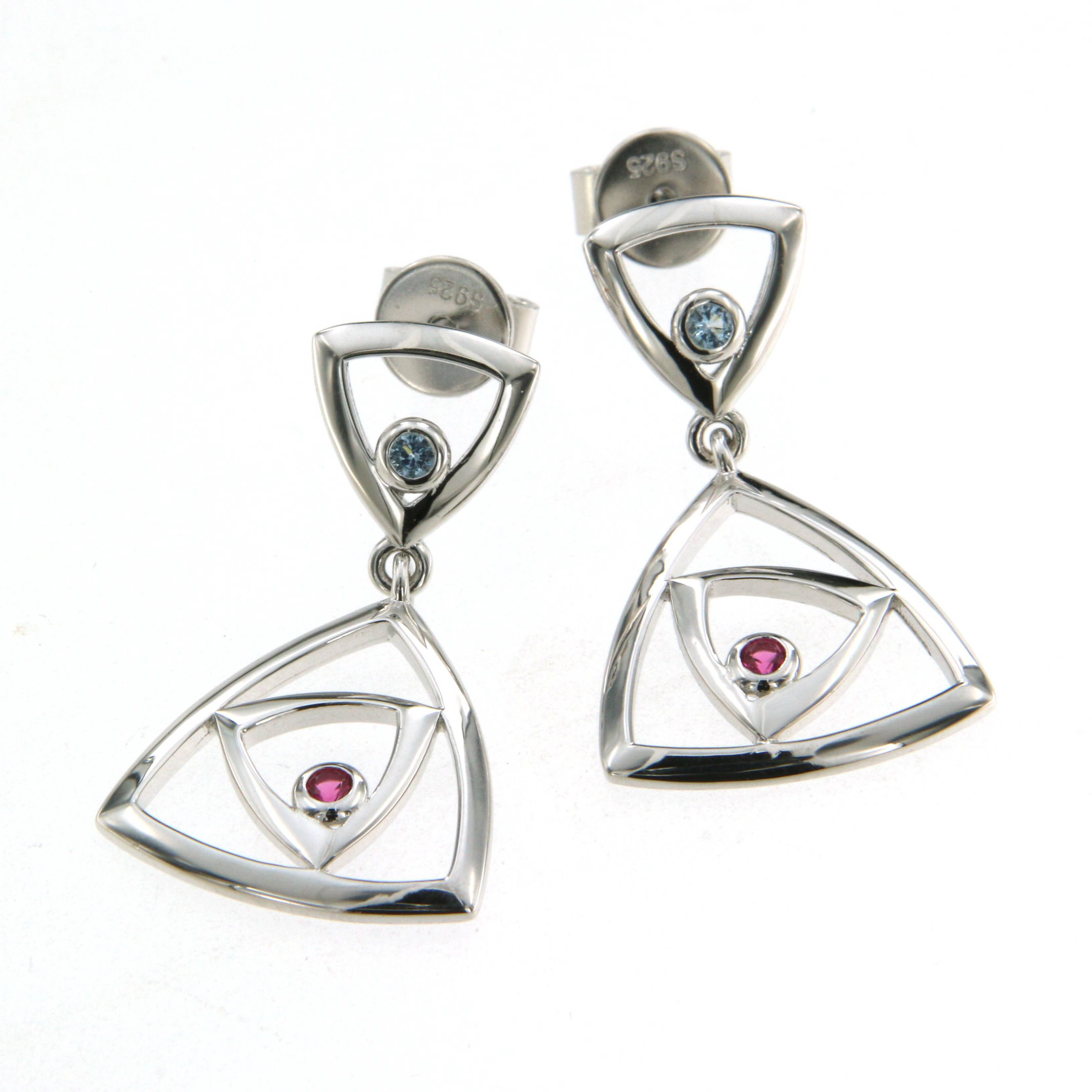 Обеци от "Jacklin hugasian" в сребро с аквамарин и червен рубин.