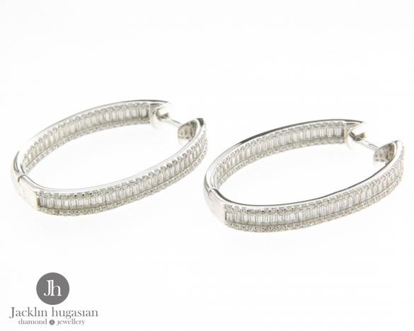 Обеци от "Jacklin hugasian" в сребро с цирконии. Дължина обеци 3.4 см., широчина 0.5 см.