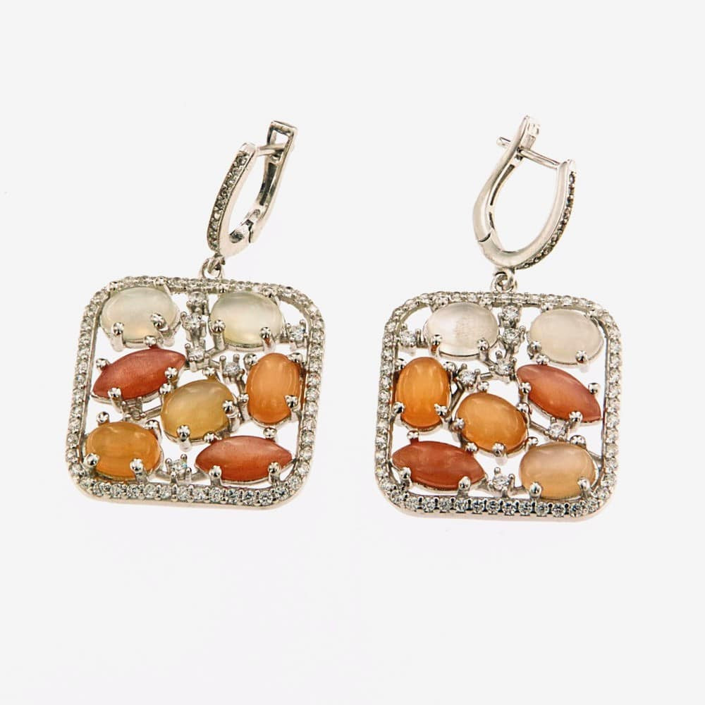 Обеци от "Jacklin hugasian" в сребро с цирконии и камък "Котешко око".
