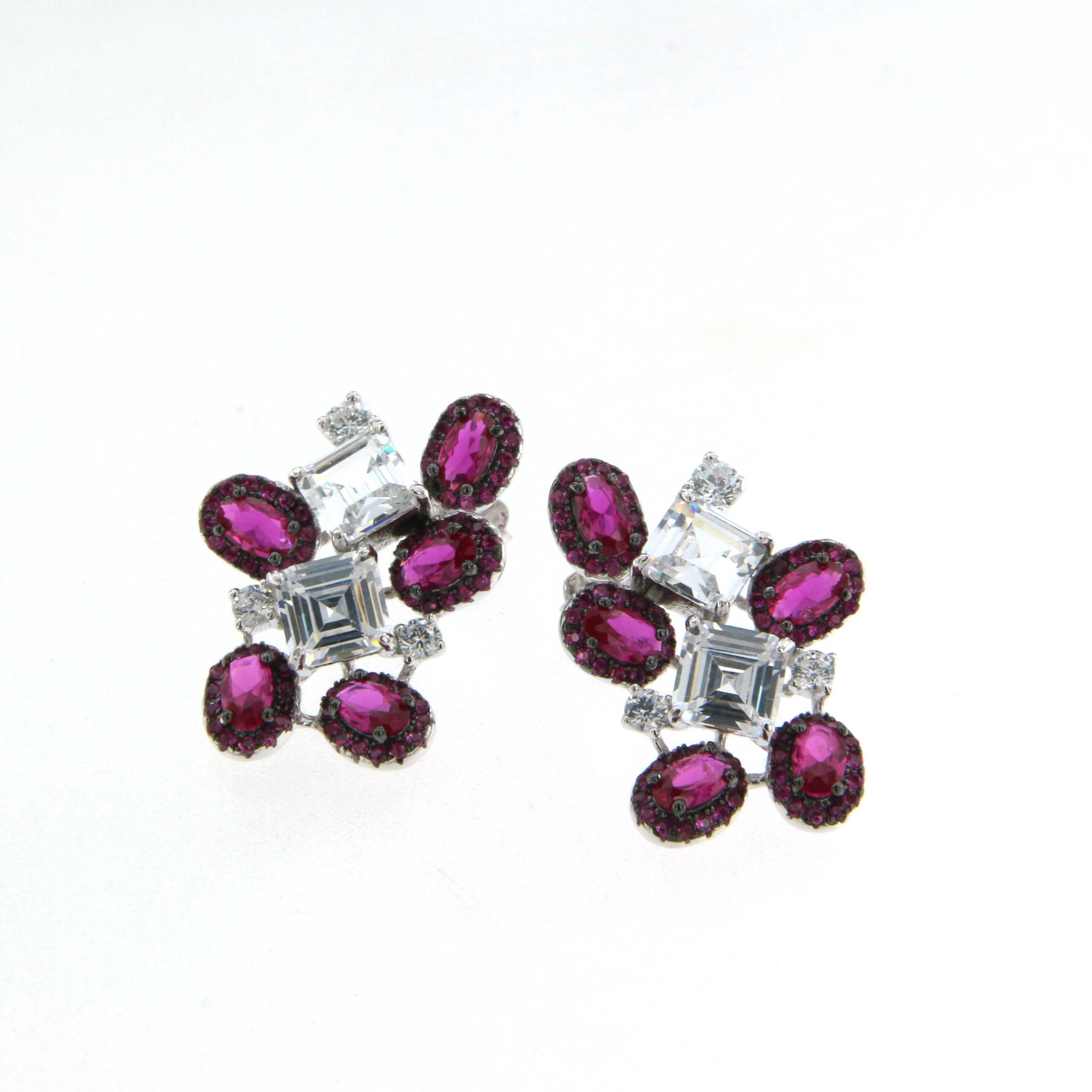 Обеци от “Jacklin hugasian” в сребро с цирконии и розов турмалин.