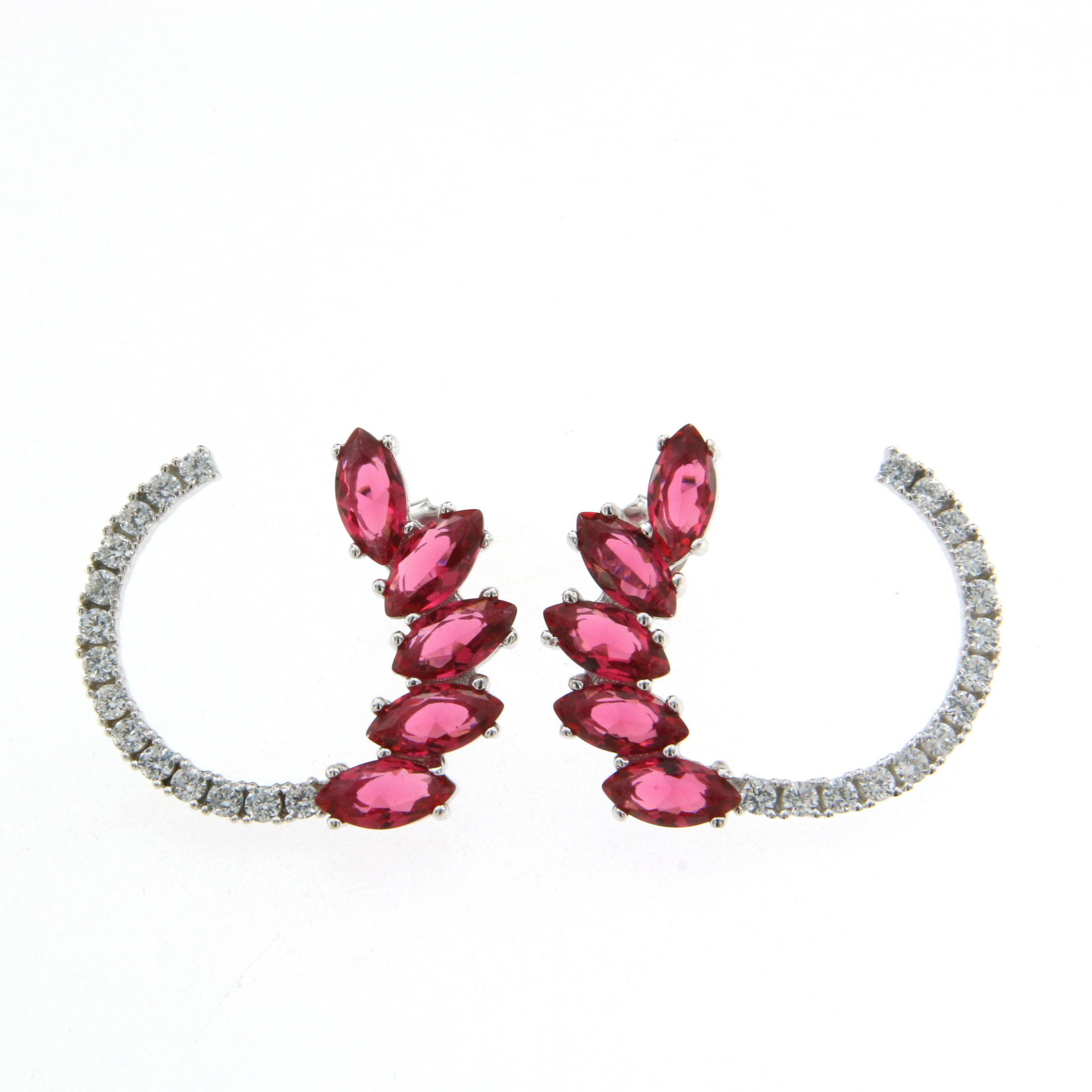 Обеци от “Jacklin hugasian” в сребро с цирконии и розов турмалин. Дължина обеци 2.5 см., широчина 2.5 см.