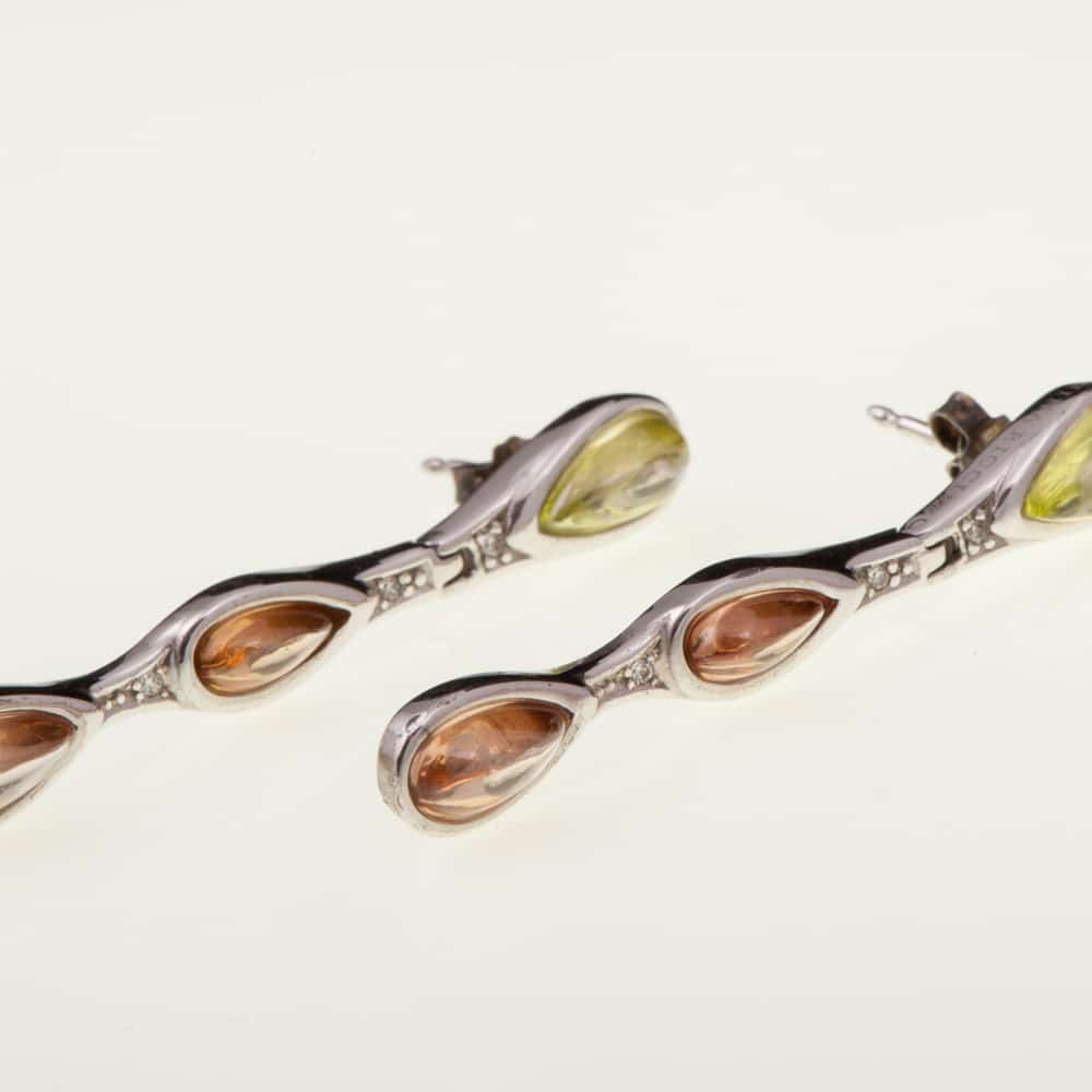 Обеци от "Jacklin hugasian" в сребро с полускъпоценни камъни цитрин, златист топаз и цирконии.