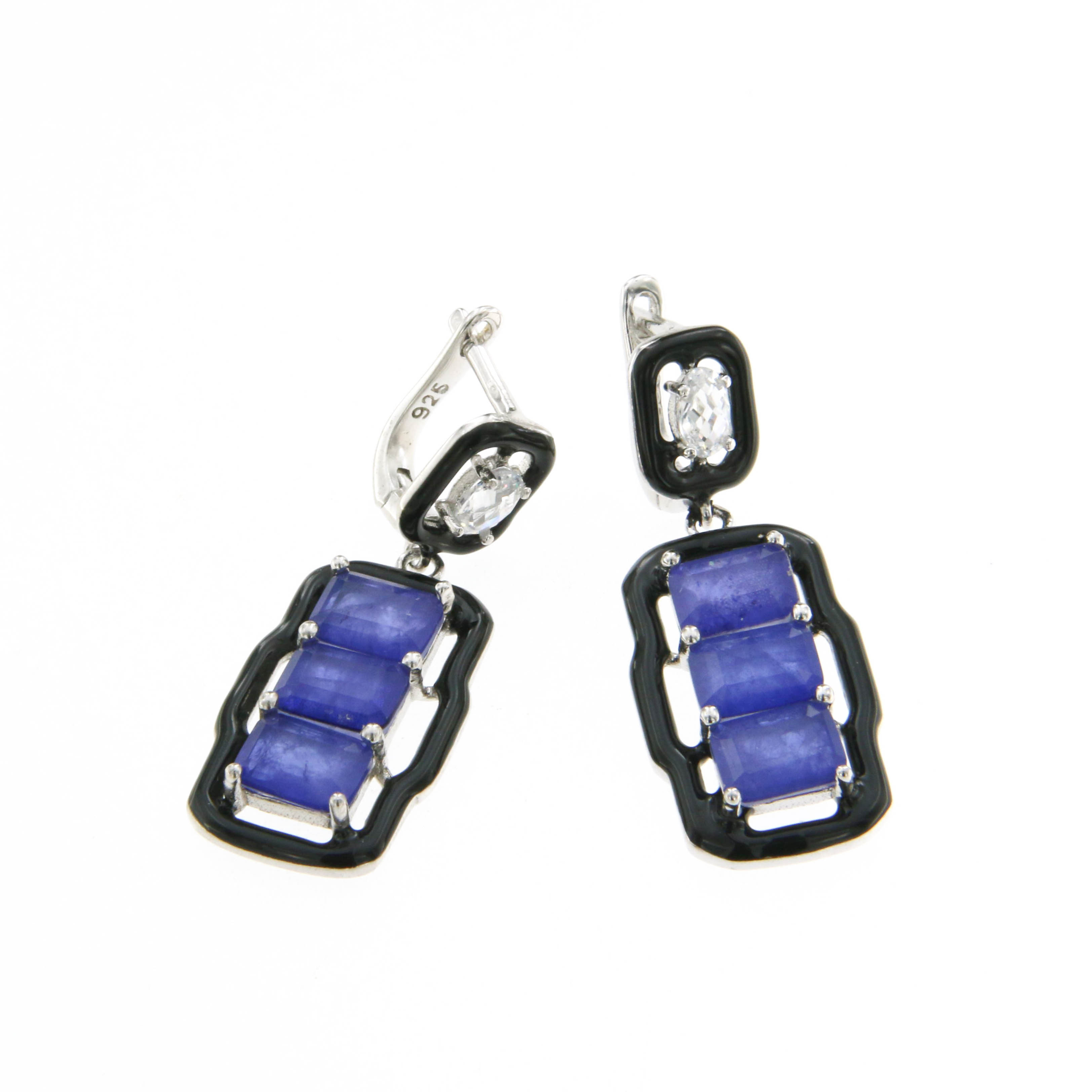 Обеци от “Jacklin hugasian” в сребро със сапфир, циркони и черен емайл.