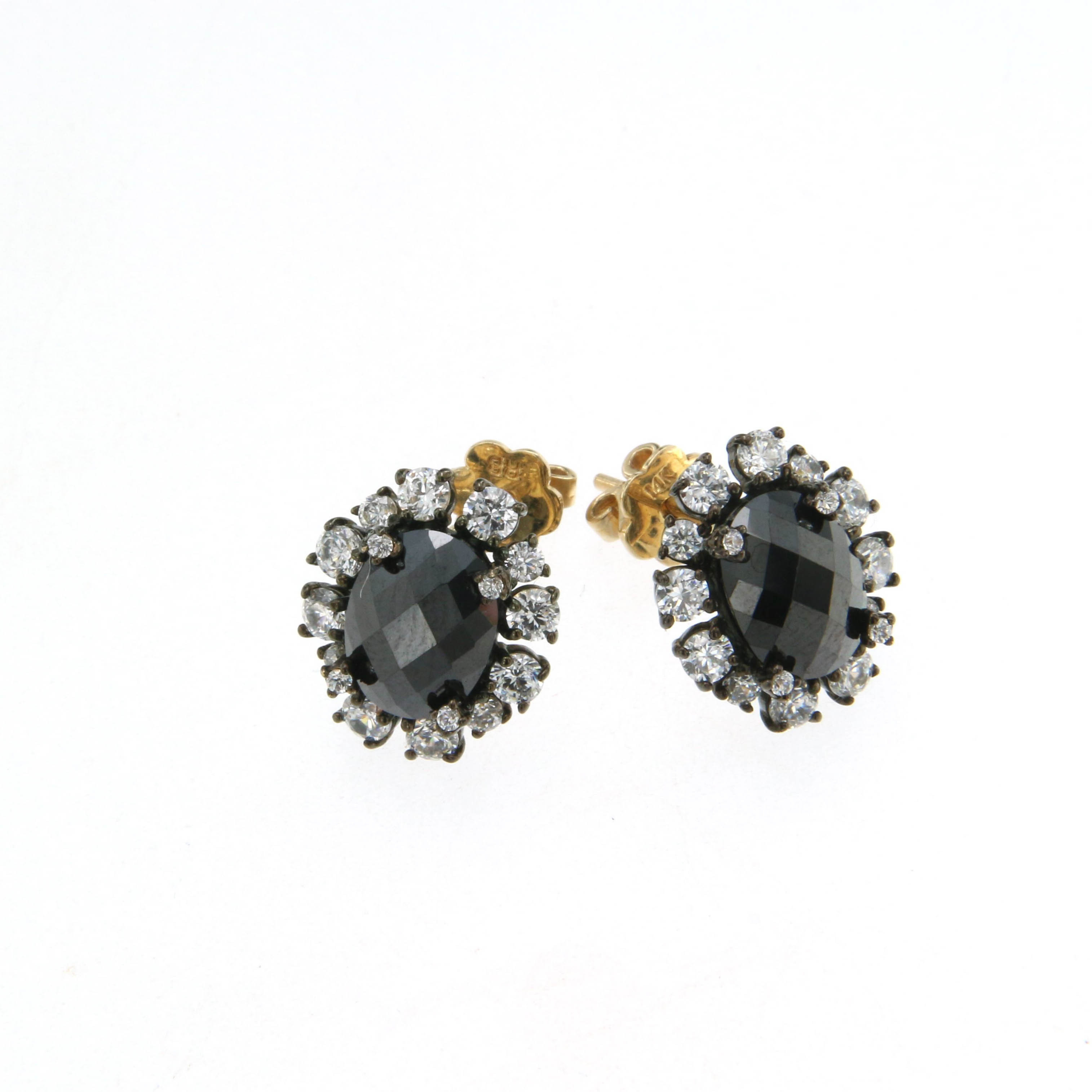 Обеци от “Jacklin hugasian” в жълто гланц с оникс и циркони.