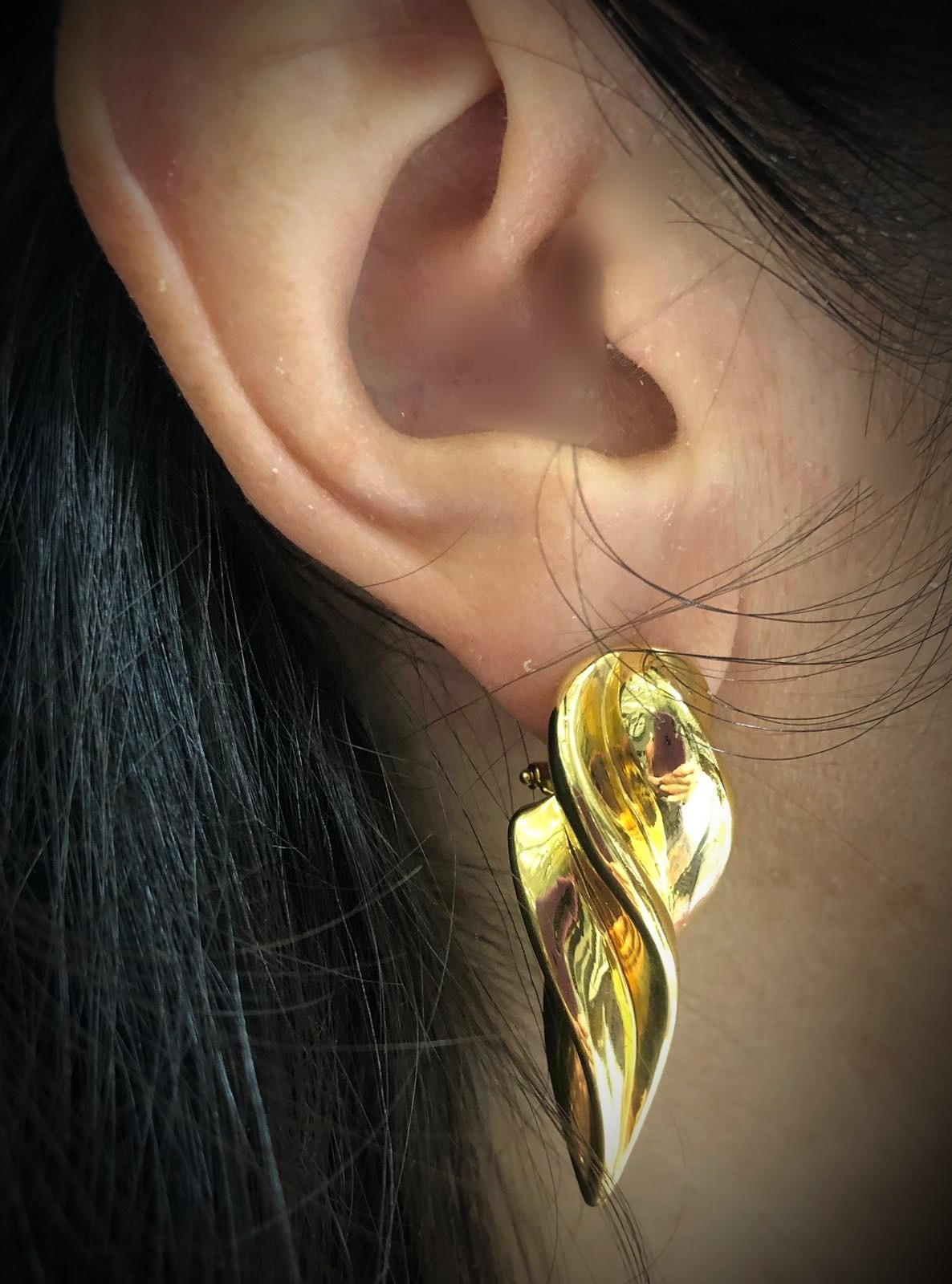 Обеци от “Jacklin hugasian” в жълто злато гланц. Дължина 4.0 см., широчина 1.5 см. Колекция “Fiore D’oro”. Произход Италия.